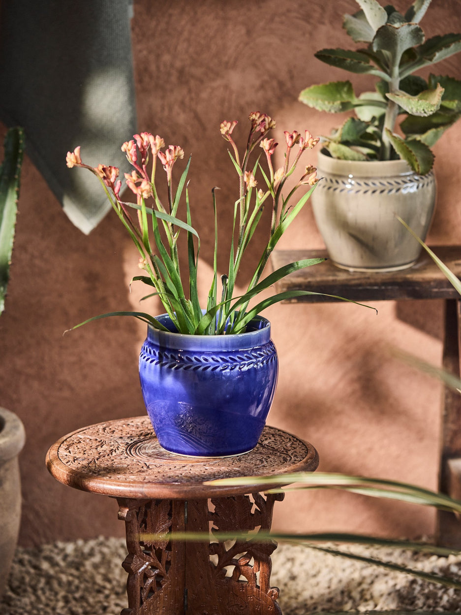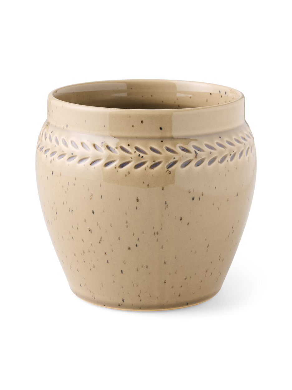 Anna and Clara admire the charming flowerpot, its delicate leaf pattern adding a touch of nature to any room. "A lovely home for a small plant or a decorative piece on its own," Clara remarks. "It brings a bit of the garden indoors," adds Anna with delight.