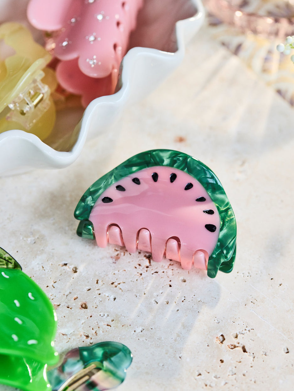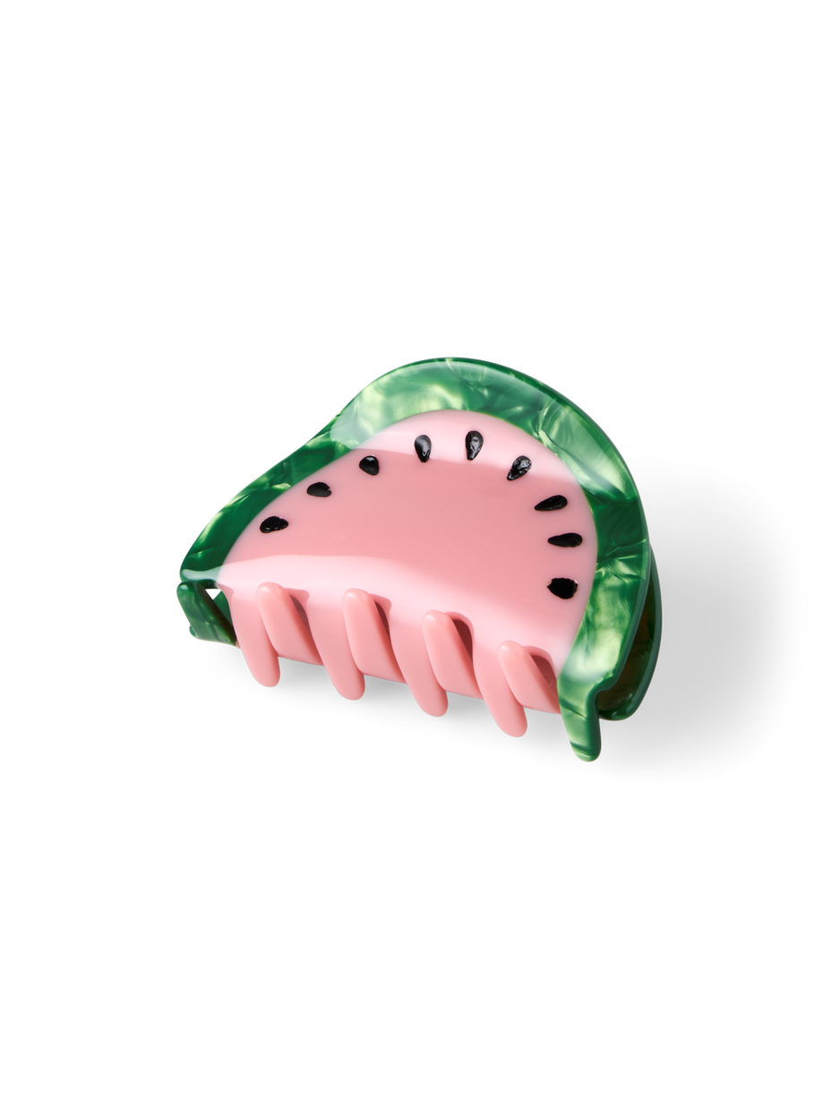 "Such a delightful hair claw adds a touch of whimsy to any hairstyle," Anna says, admiring the watermelon design. "It brings a smile and a splash of colour to one's day," Clara adds warmly.