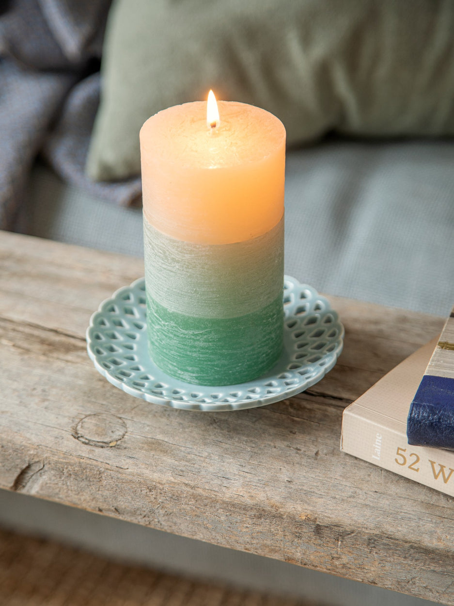 "Such a charming rustic pillar candle brings warmth and atmosphere to any room," Clara says softly. "Its gentle glow creates a cosy ambience," Anna adds, admiring the soothing hues.