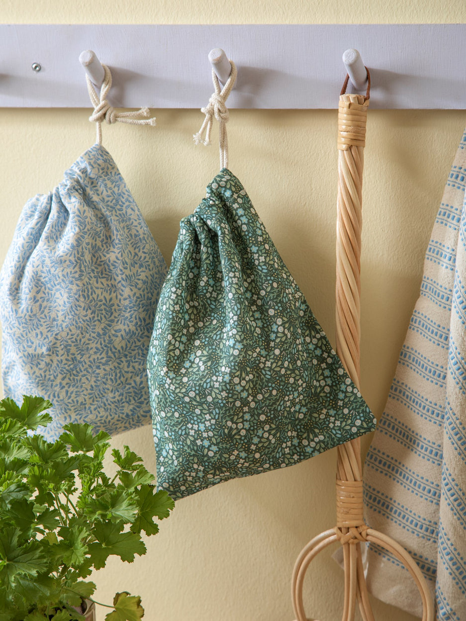 "Organising the kitchen is a delightful task," Clara says, placing spices into labelled pouches. "Indeed, it brings such order and charm," Anna agrees, admiring the neat rows.