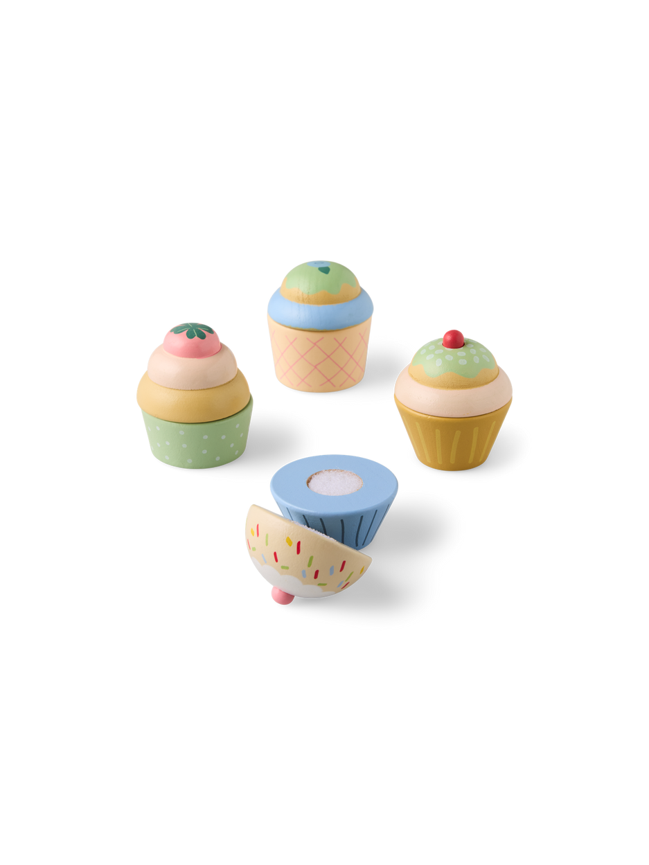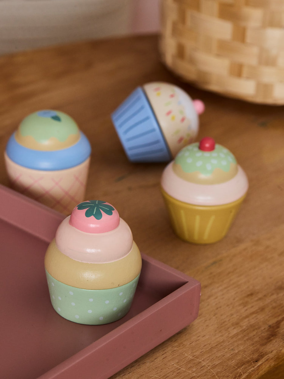 "These wooden toy cupcakes look delightful," Anna says, arranging them neatly. Clara smiles, "They inspire endless imaginative play for the children, adding sweetness to their pretend tea parties."