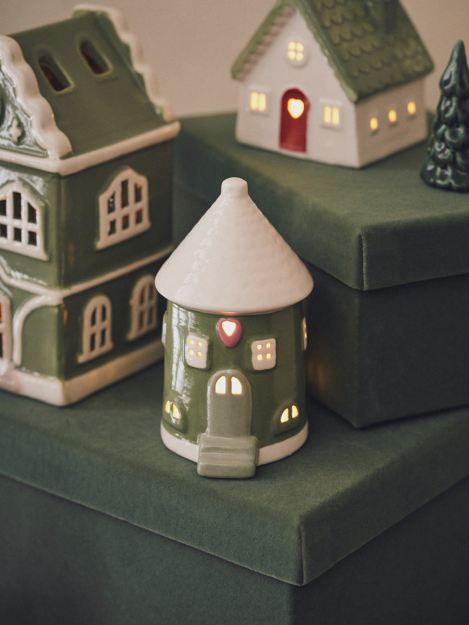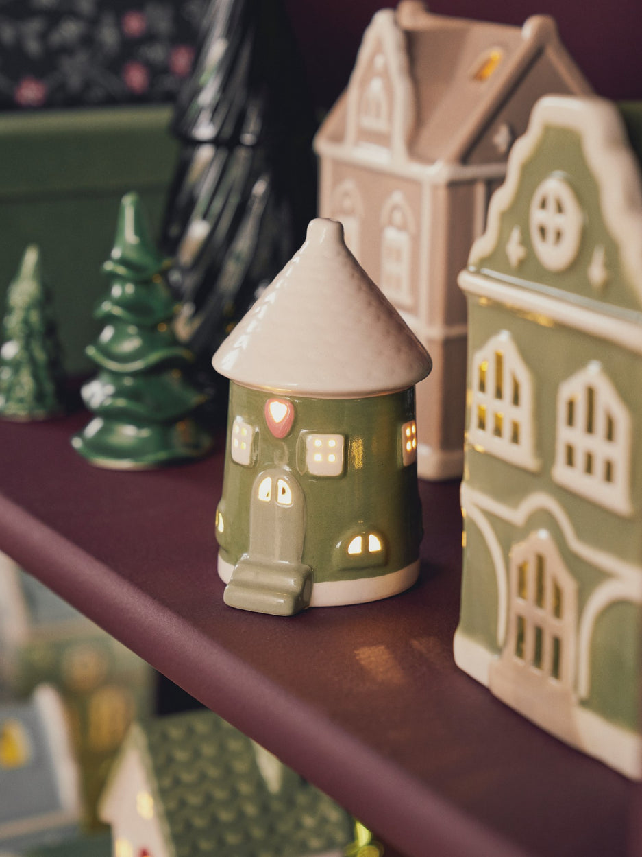 The soft glow of the LED house casts a warm light, creating a cosy atmosphere in the sisters' living room. "Such a delightful way to add charm to our décor," Clara explains. Anna smiles, "It brings a touch of whimsy to any corner."