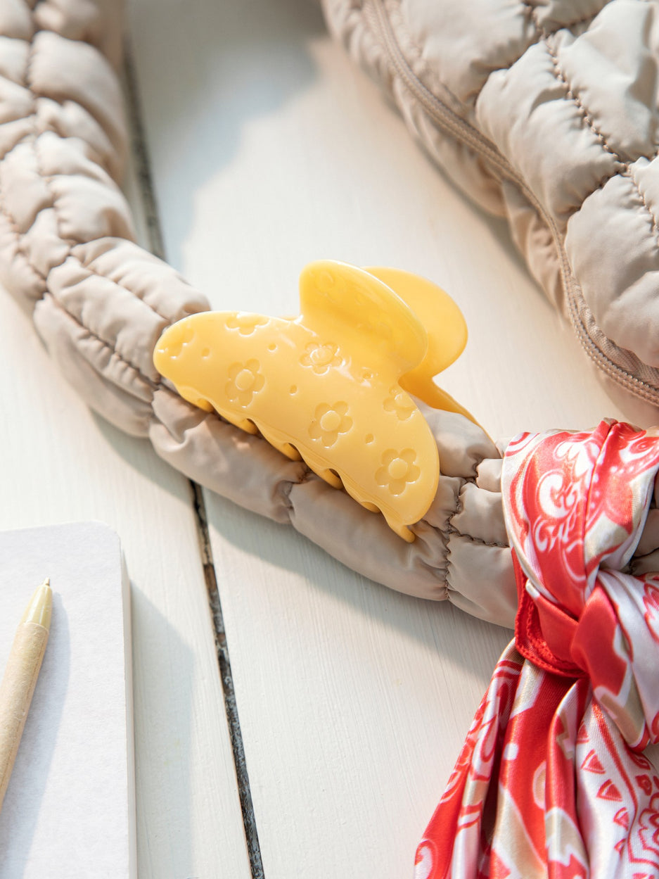Anna exclaims with delight as she sweeps her hair up and secures it with a charming hair claw. Clara adds, "A practical accessory for keeping hair in place throughout busy days, while adding a little beauty to one’s routine."