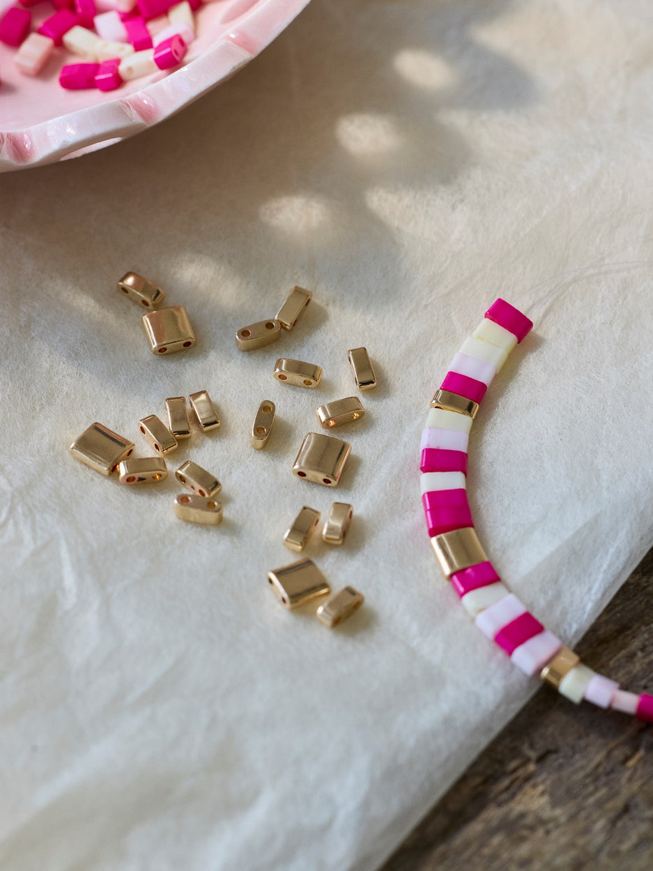 "These metallic tile beads will inspire endless creativity," Clara says, admiring their shimmer. Anna adds, "They are perfect for crafting unique jewellery that reflects one's personal style."