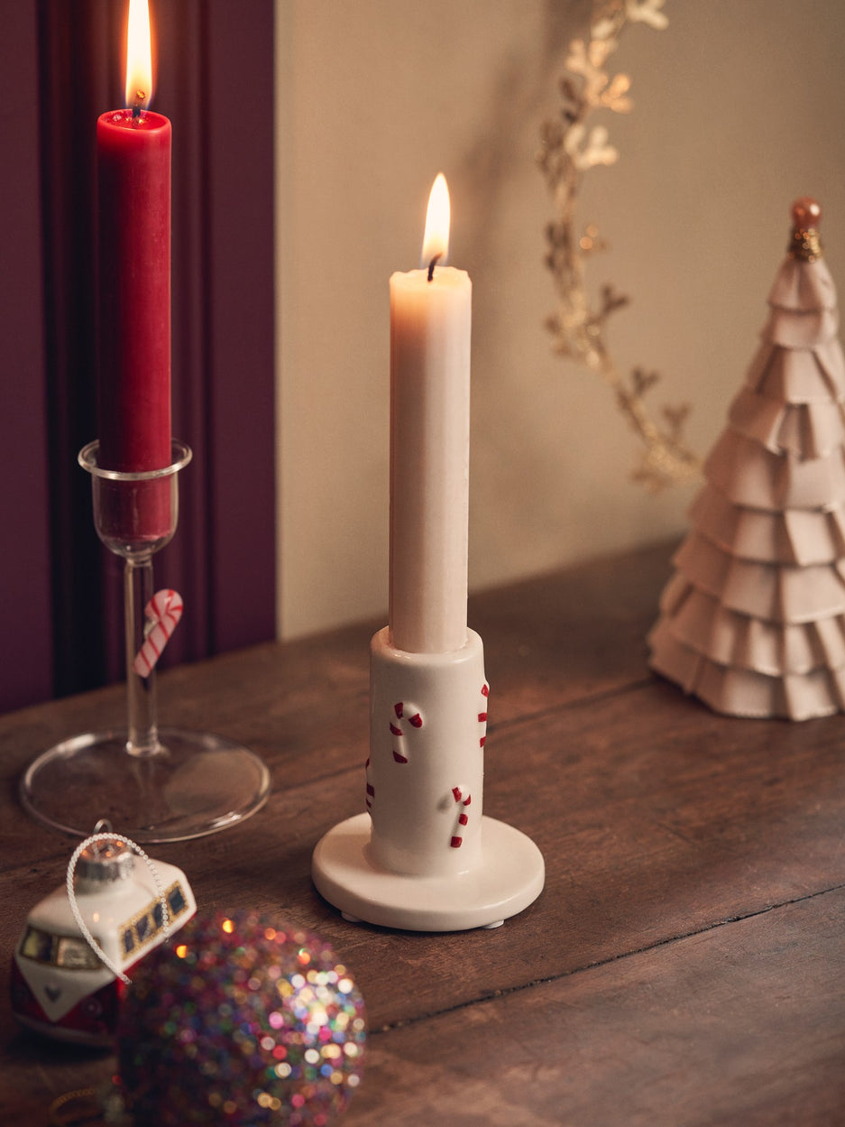 The candleholder rests elegantly on the table, casting a warm glow. "A lovely addition to any room," says Clara, appreciating its charm. Anna smiles, "Its festive design brings a touch of joy to our cosy evenings."