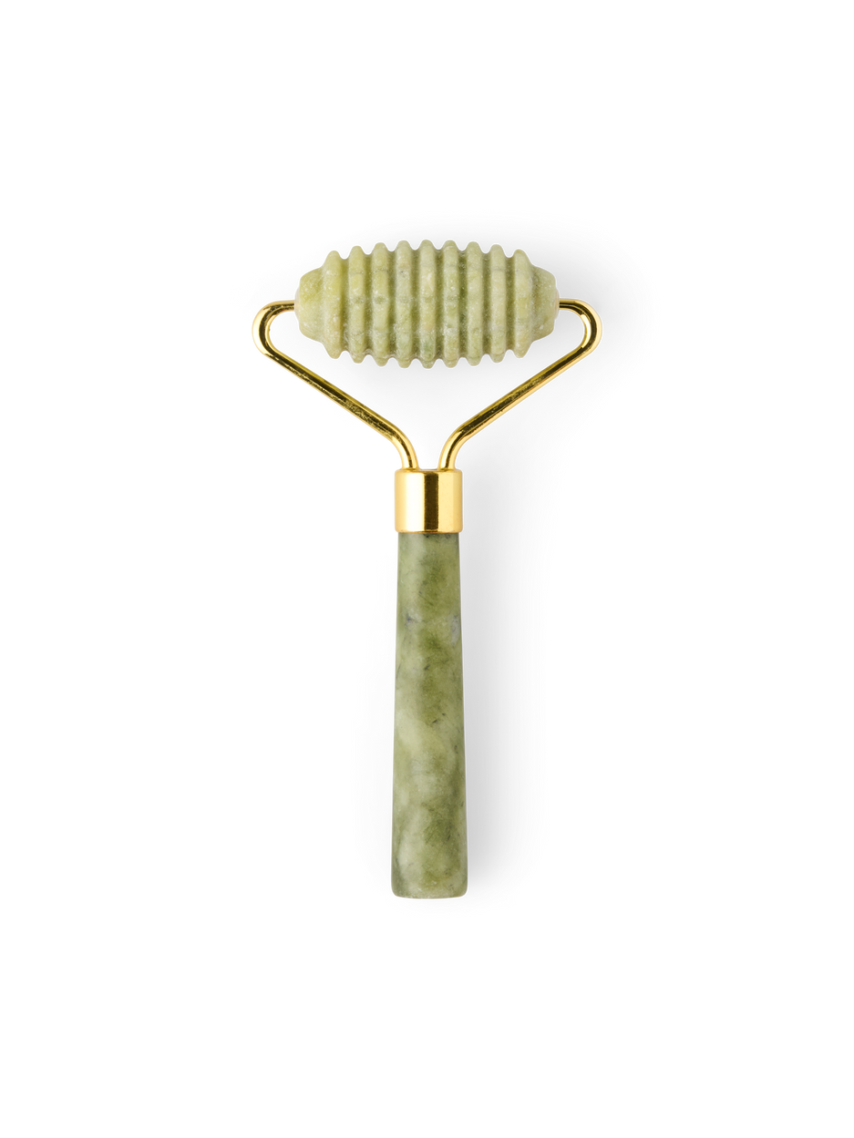 Anna gently rolls the face roller across her cheek. "A soothing ritual for the skin," she says with delight. Clara adds, "It helps enhance your skincare routine, bringing a touch of tranquillity to your day."