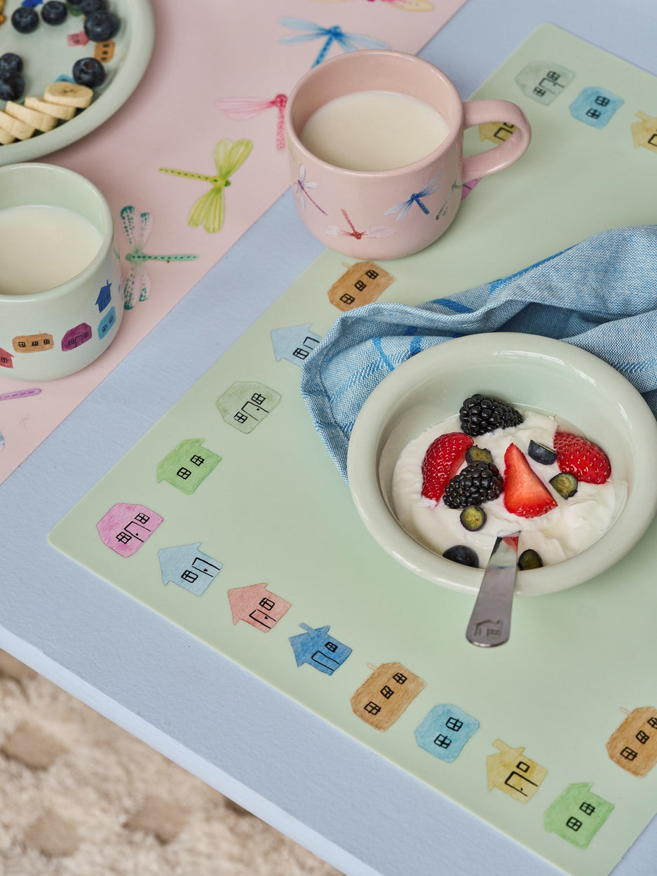 "Setting a table with care brings a sense of occasion to any meal," Clara says as she places the colourful placemat. "The design adds a touch of whimsy," Anna smiles, imagining joyful gatherings around the table.