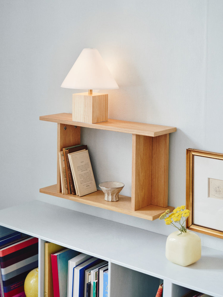 MDF/eik spónn. 56 x 15 x 31.5 cm.