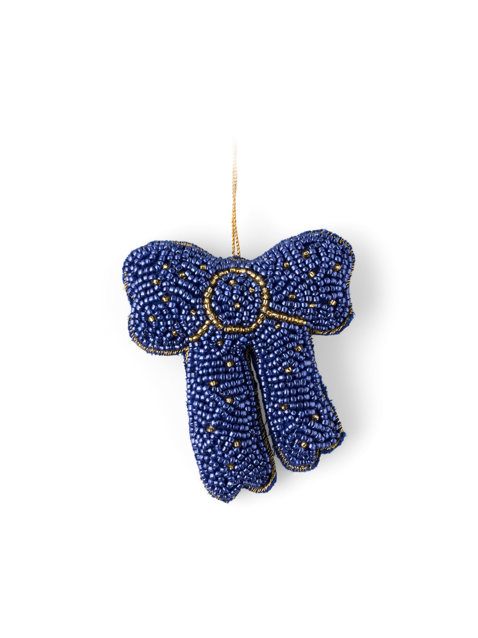 "How charming this bow ornament is with its shimmering beads," Anna observes. Clara agrees, saying, "It adds a touch of whimsy to any space, whether hung on a tree or displayed on a wall."