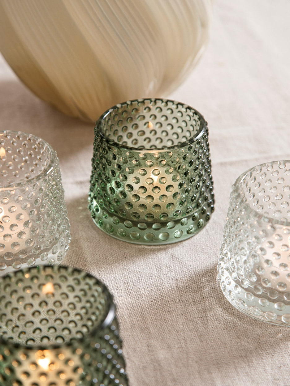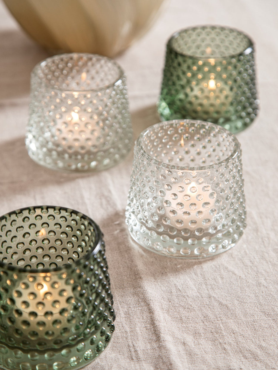 "Tealights bring a gentle warmth to any room," Clara says, placing a tealight holder on the table. Anna adds, "Its soft glow creates a serene and inviting atmosphere."