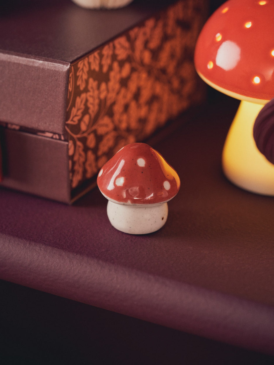 "Such a whimsical addition to any shelf or windowsill," Anna muses, admiring the charming mushroom. Clara adds, "It brings a playful touch to the home, reminding us of enchanting woodland walks."