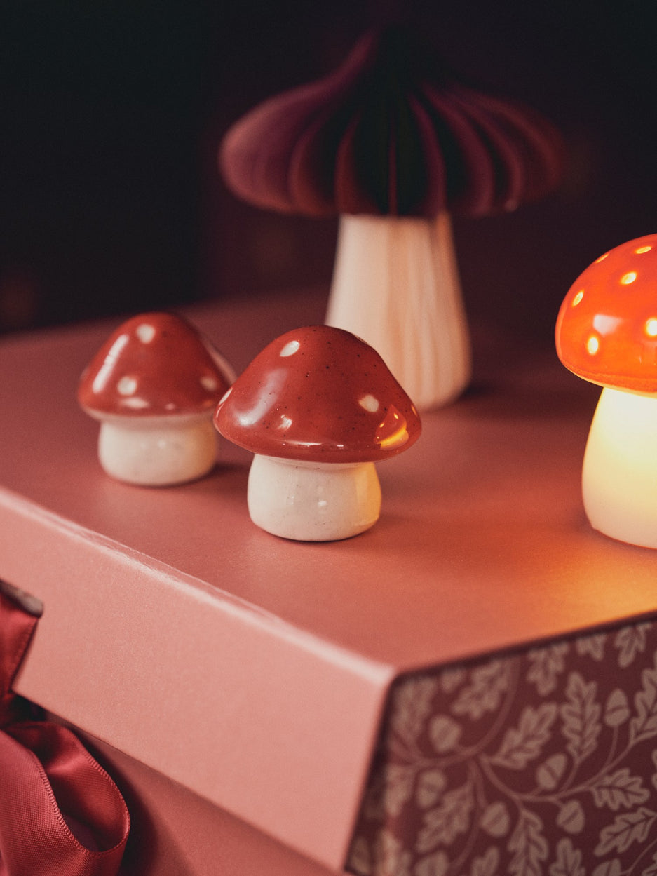In the cosy corners of their home, Anna and Clara find joy in whimsical decorations. "This charming mushroom adds a playful touch to any shelf," says Anna, admiring its vibrant colours. "Indeed, it brings a sense of woodland wonder indoors," Clara exclaims.
