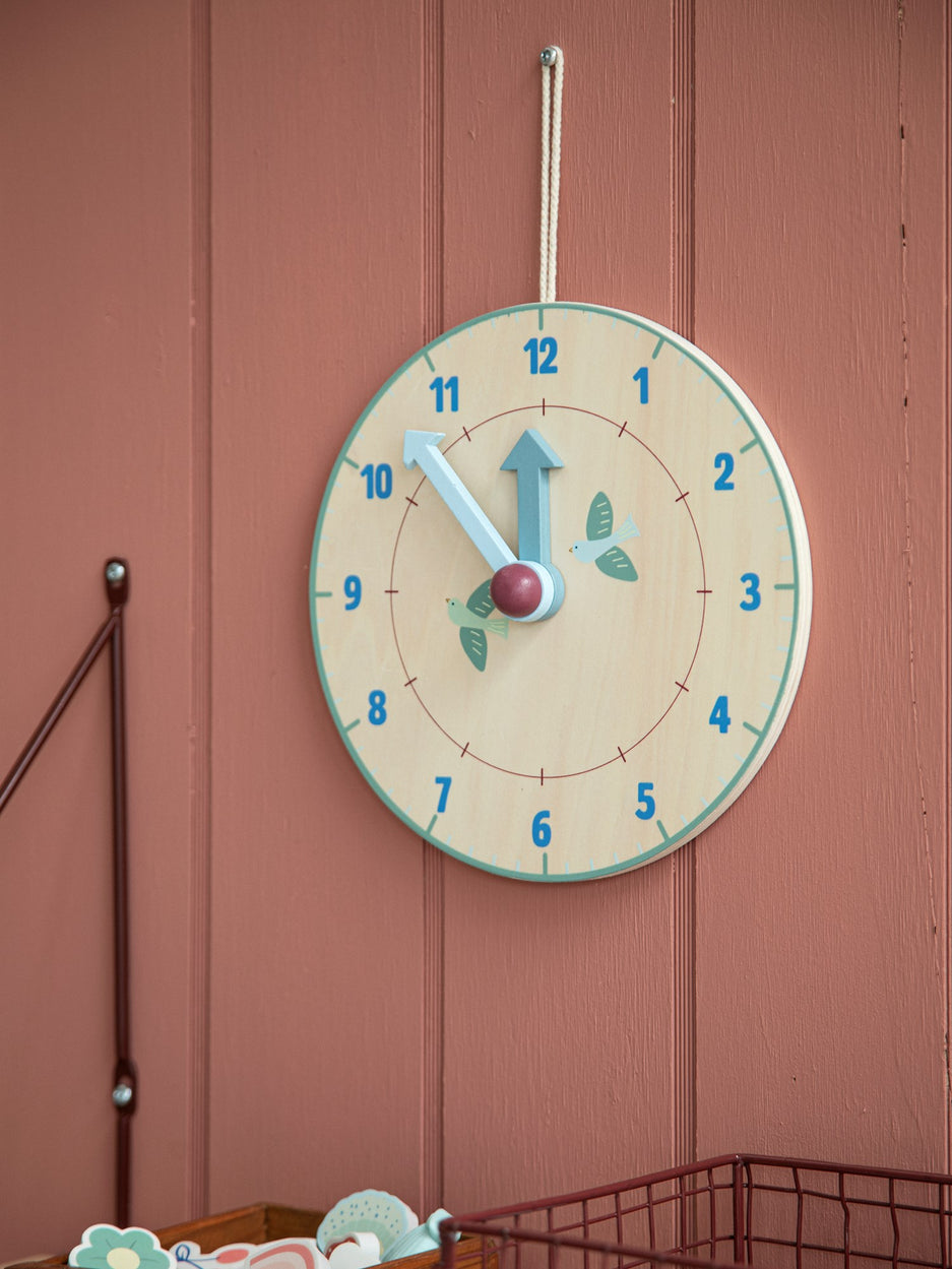 The children's wooden clock captures the nieces' attention as they learn to tell time. "A delightful way to teach them," Clara says. Anna adds, "It is both educational and charming, a lovely addition to their playroom."