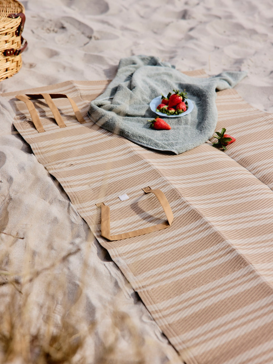 A day by the seaside calls for both comfort and a little sense of adventure. Clara says a foldable beach mat is wonderfully practical for keeping sand at bay, while Anna explains how its charming design brings a cosy feeling to any outdoor escape.