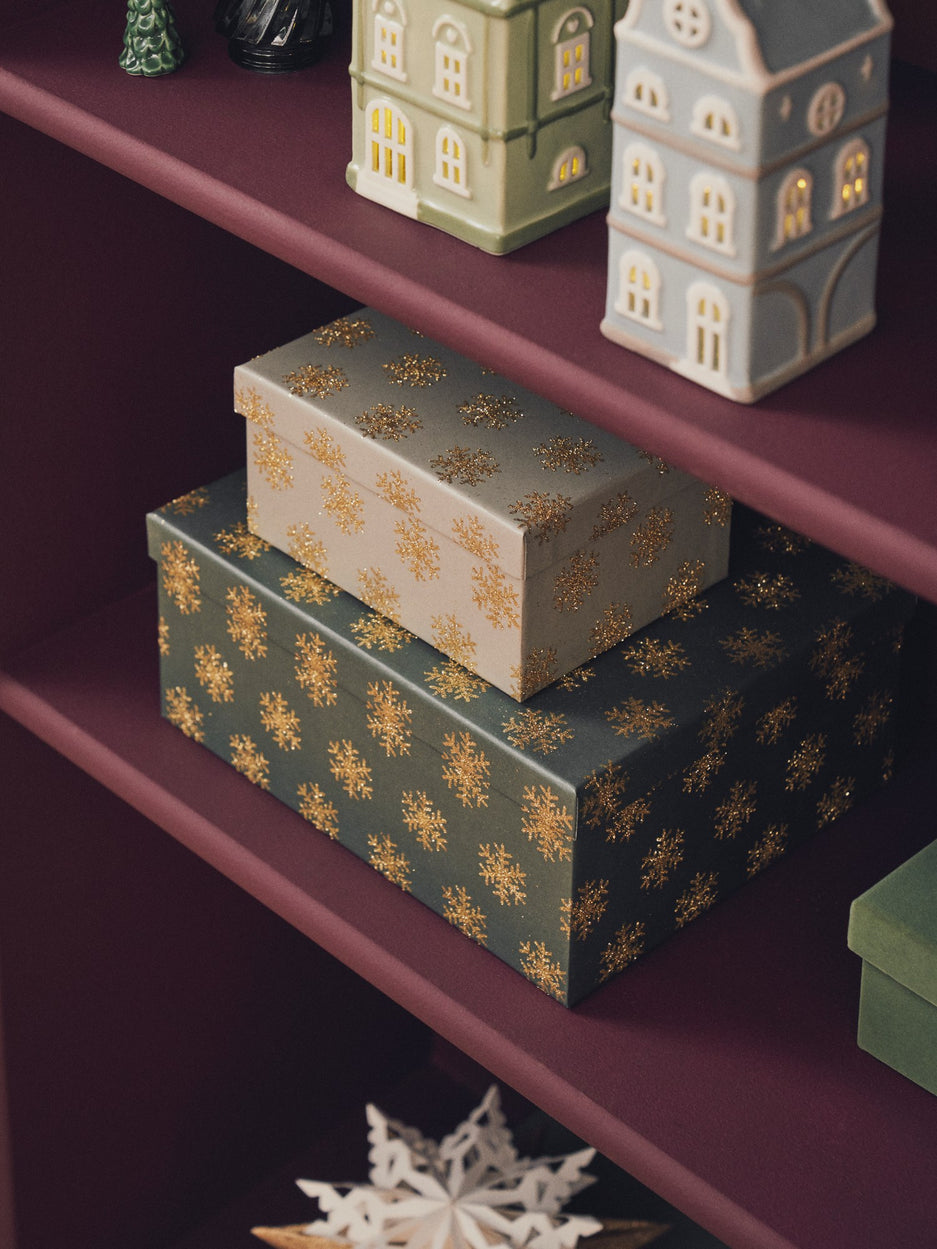 "Such a charming storage solution," Clara says, admiring the decorative box. "It is both practical and delightful for keeping treasures or wrapping gifts," Anna adds, envisioning festive gatherings filled with joy.