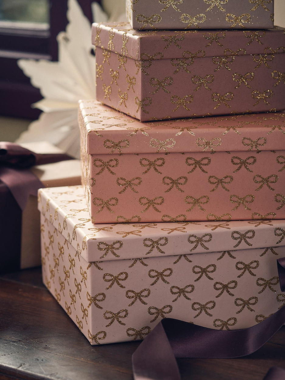 A gift box sits elegantly on the table, its delightful pattern catching the light. "Such a lovely way to present a gift," Clara says as she passes by. "I wonder who the lucky recipient is..."