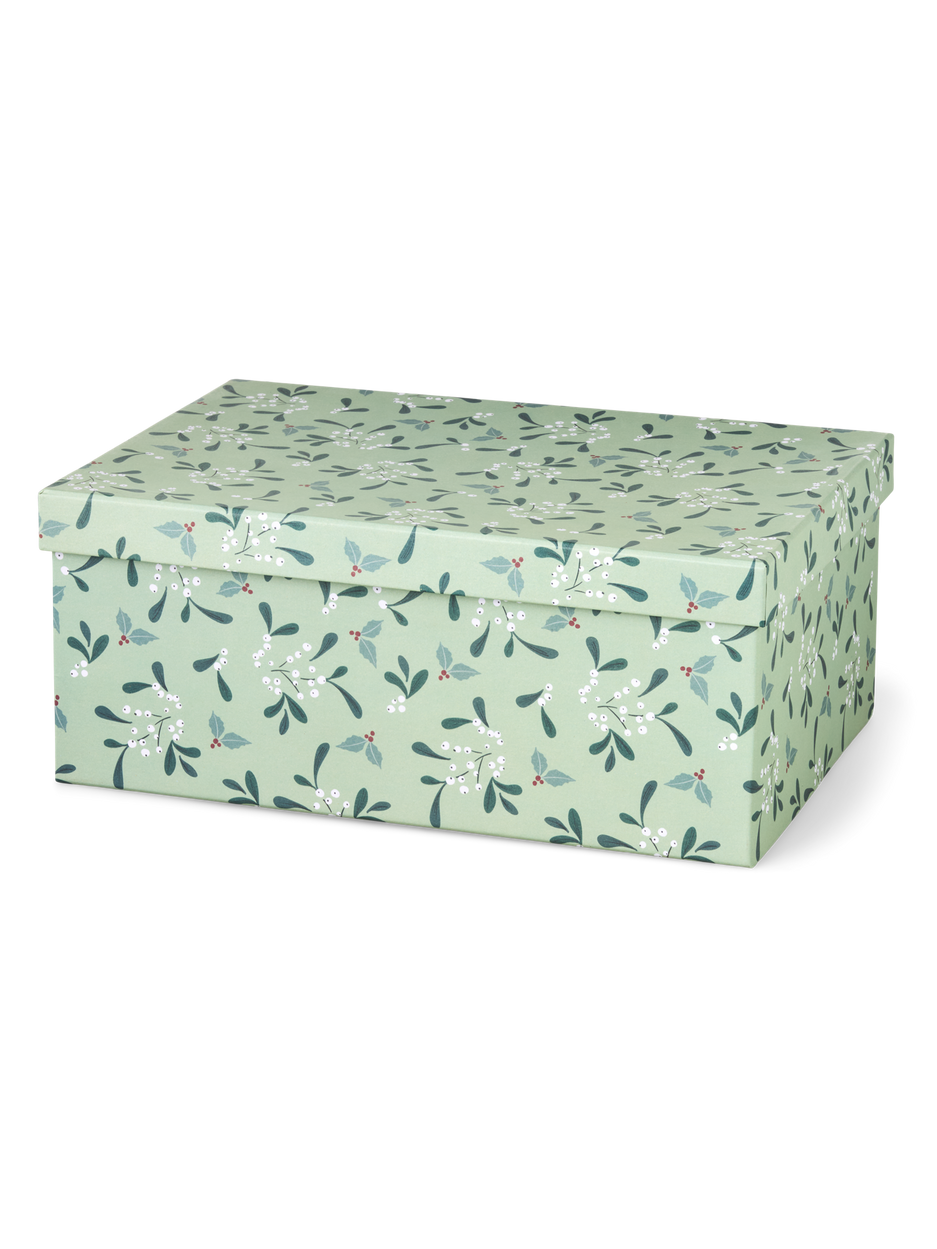 A gift box sits elegantly on the table, its delightful pattern catching the light. "Such a lovely way to present a gift," Clara says as she passes by. "I wonder who the lucky recipient is..."