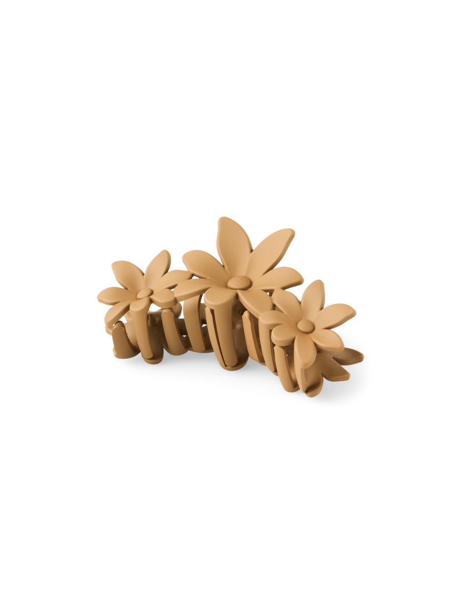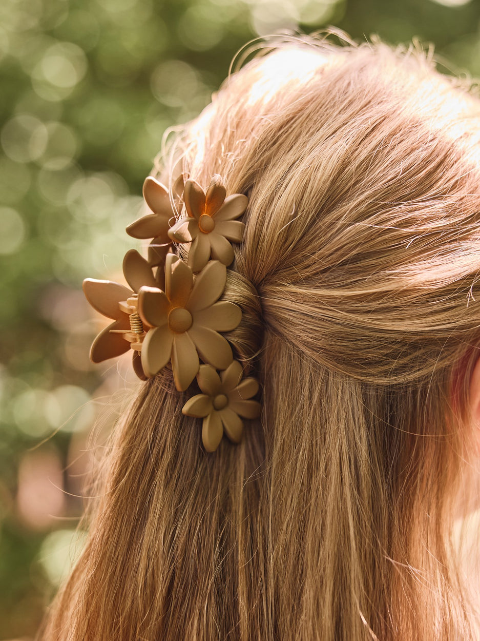 The hair claw's delicate floral design catches the light beautifully. "Such a charming way to add a touch of nature to one's hairstyle," Clara says. "Indeed, it brings a bit of whimsy to any look," Anna adds with a smile.