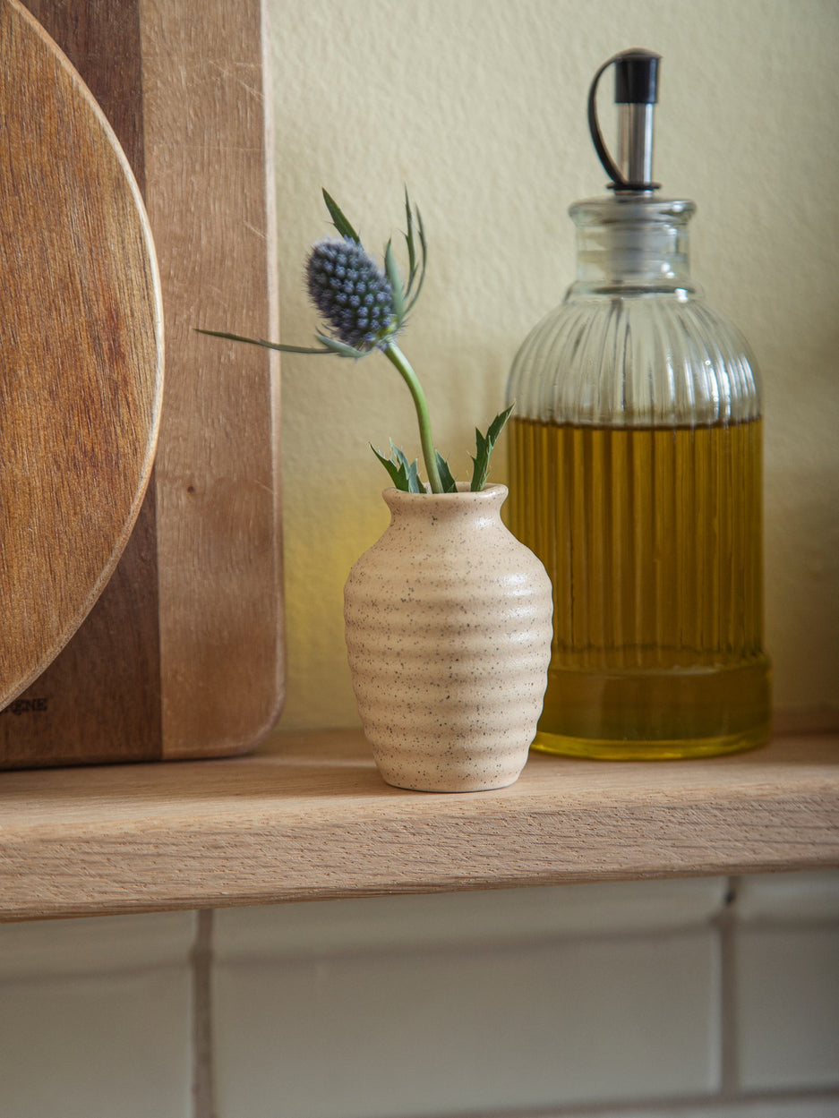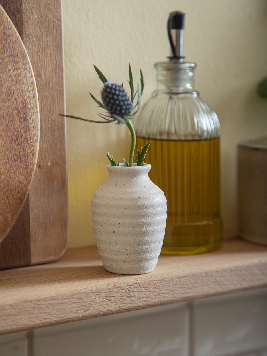 A small vase and a delicate flower is a lovely combination, the sisters believe.