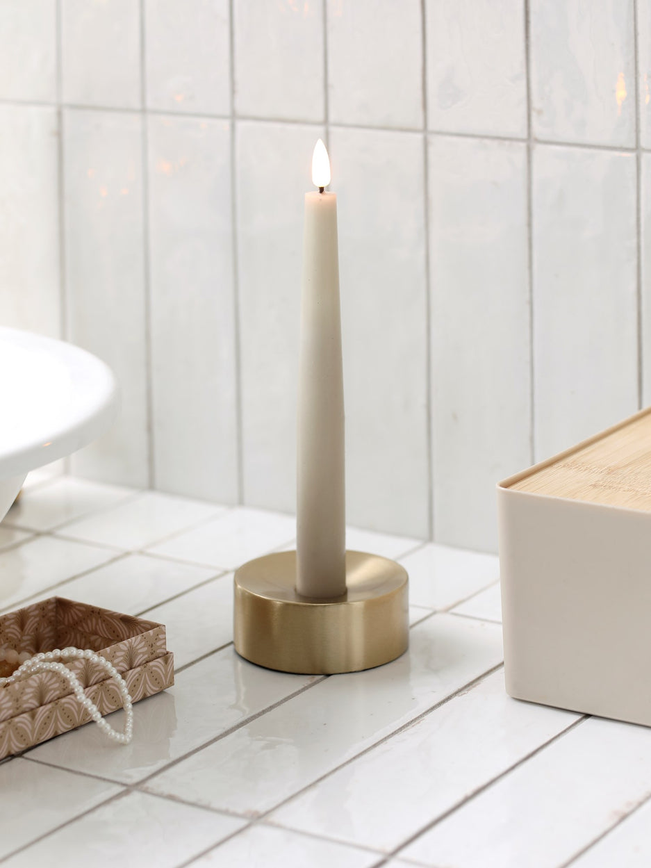 "Imagine the warm glow it brings to a cosy evening," Anna muses, placing the candleholder on the table. Clara smiles, "Its simple design enhances any room, creating a serene atmosphere."