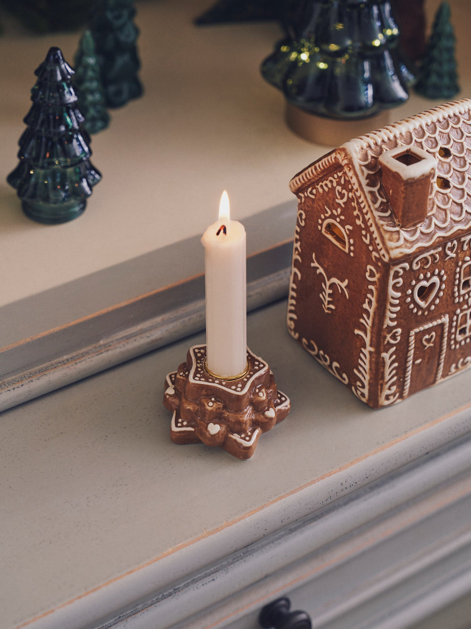 "Such a charming piece for the festive season," Anna smiles, admiring the gingerbread candleholder. "It brings warmth and a touch of whimsy to our gatherings," Clara adds, imagining the soft glow it will cast on their table.