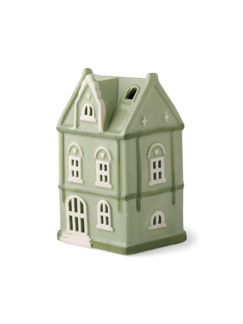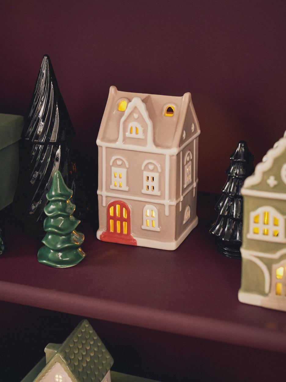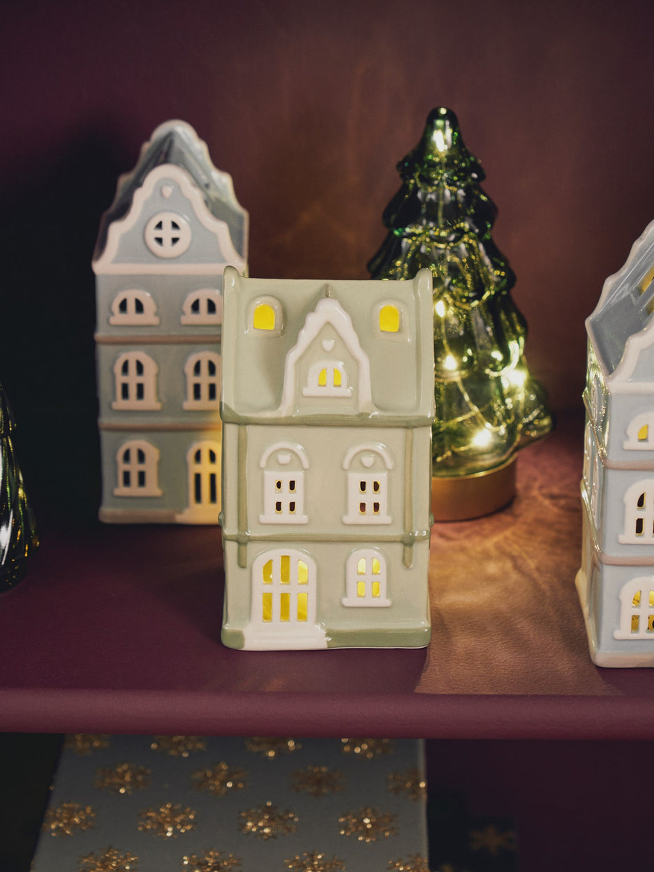 "Imagine the warm glow from this charming townhouse tea light holder," Anna says, placing it gently on the mantel. Clara adds, "It brings a cosy touch to any festive setting, creating a delightful atmosphere for the season."