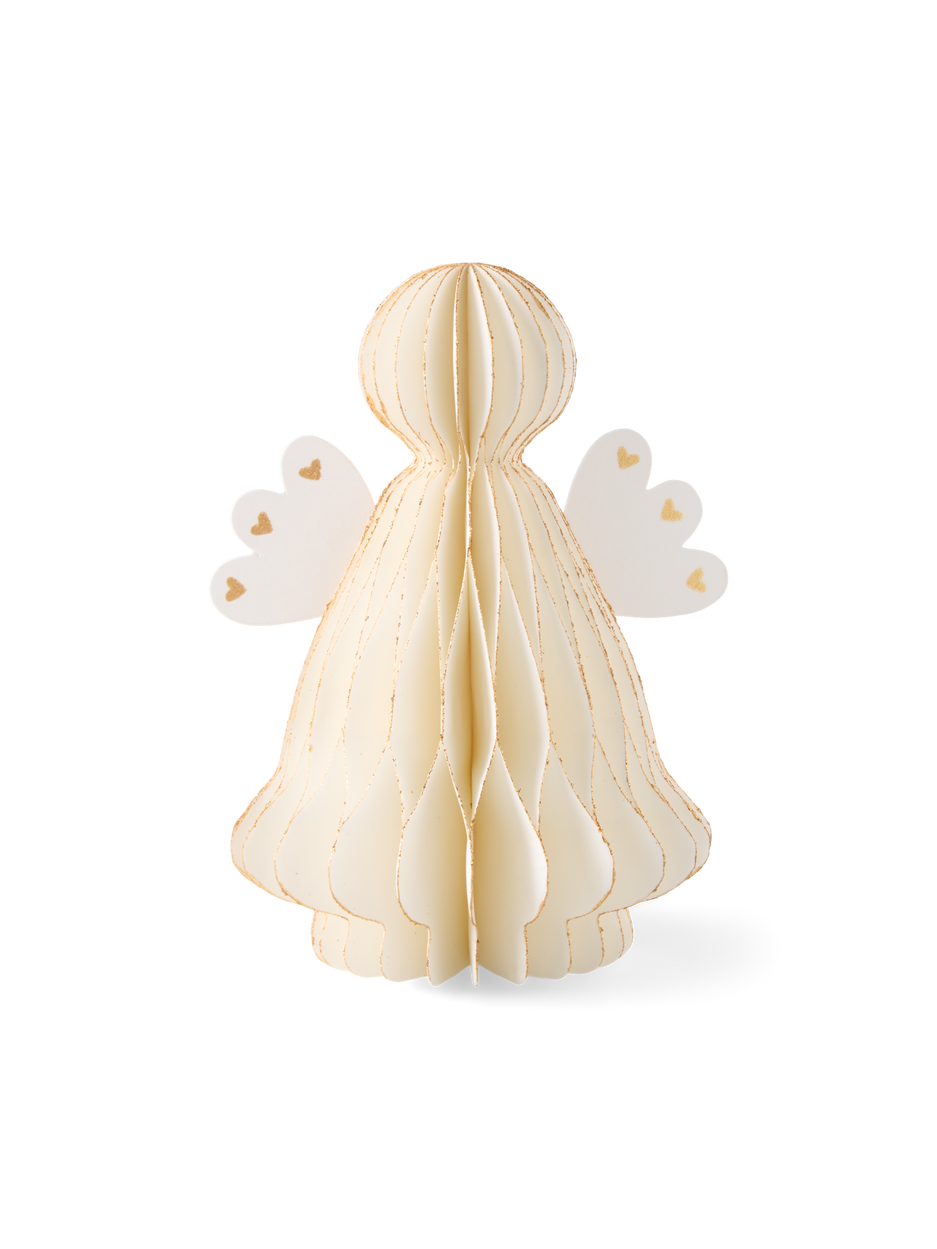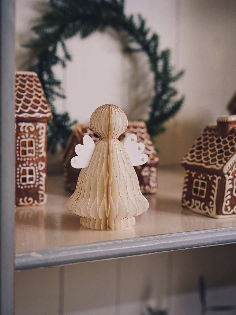 "Such a charming addition to our décor," Clara says, admiring the paper angel. "It brings a sense of peace and whimsy to any room," Anna adds with a smile, appreciating its delicate design and heart-shaped wings.