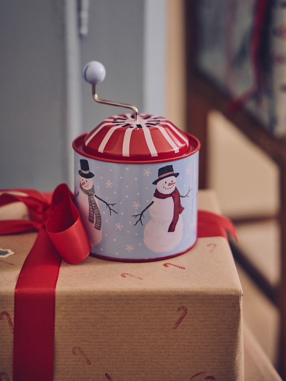 "I wonder what is in my Advent calendar today," the nephew muses, as he starts unwrapping the gift box. Clara smiles a secret smile, well-knowing that the pretty paper conceals a little music box that will delight the children.