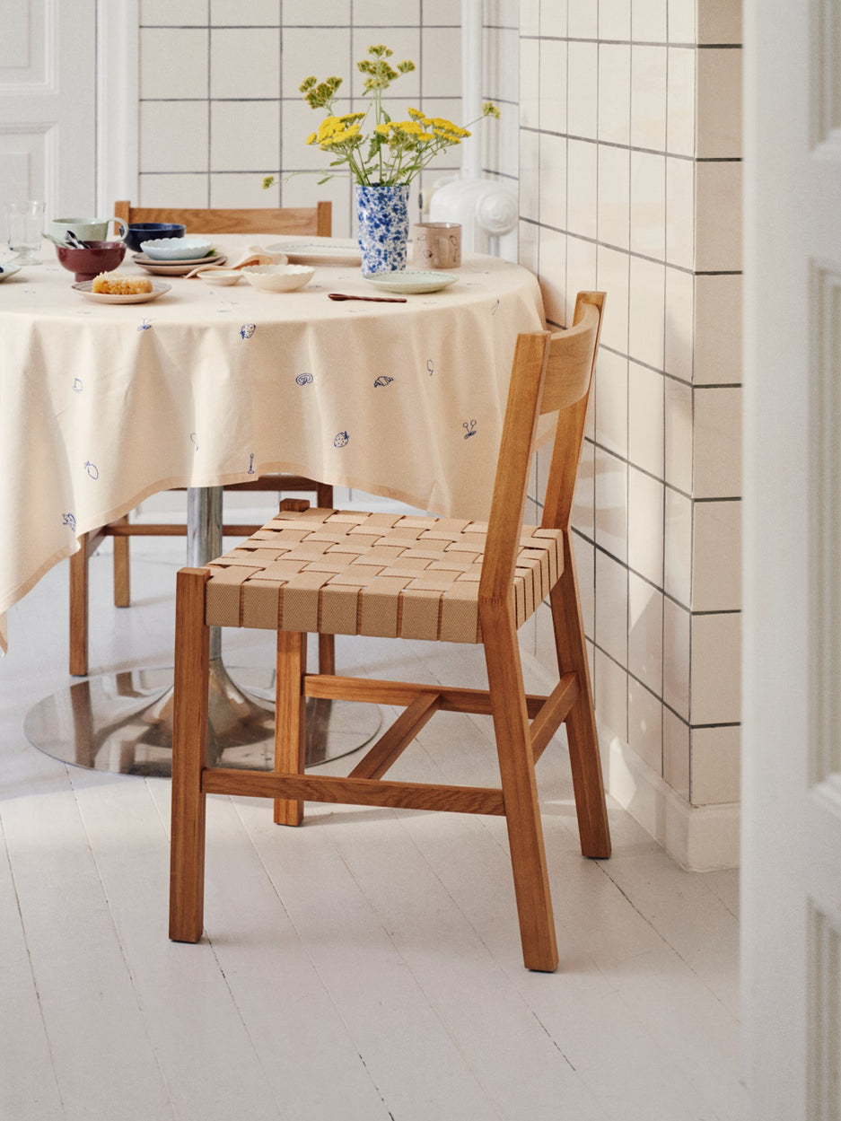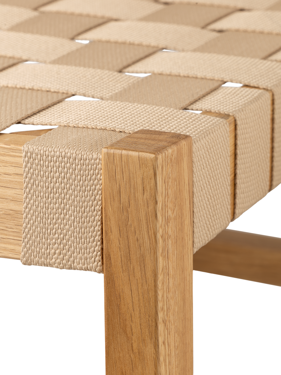Solid eik viður/fabric. 49 x 47 x 80 cm.
