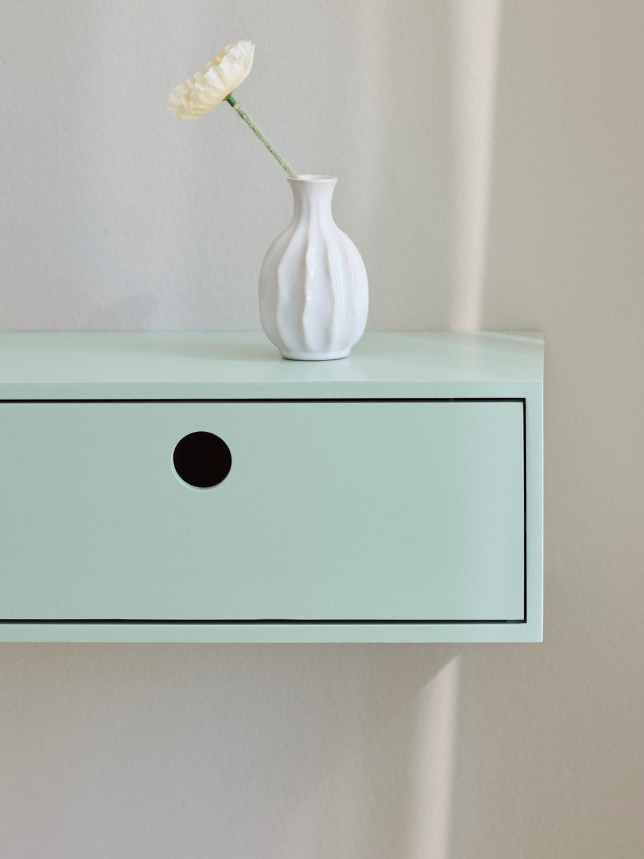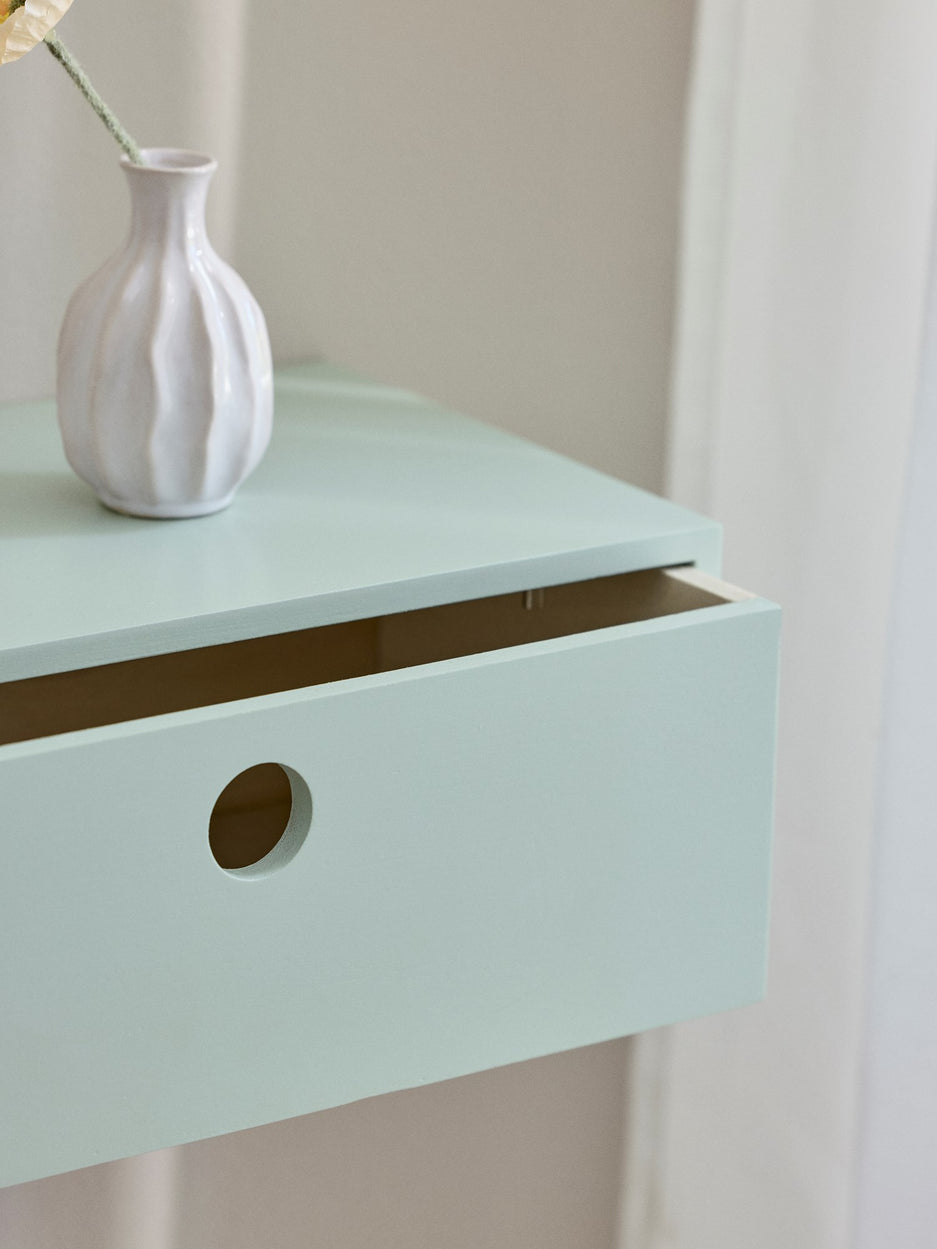 "Such a charming drawer," Anna says, hanging it next to her bed. "It helps keep the bedroom tidy," she adds. Clara smiles, "A lovely way to organise small treasures and essentials."