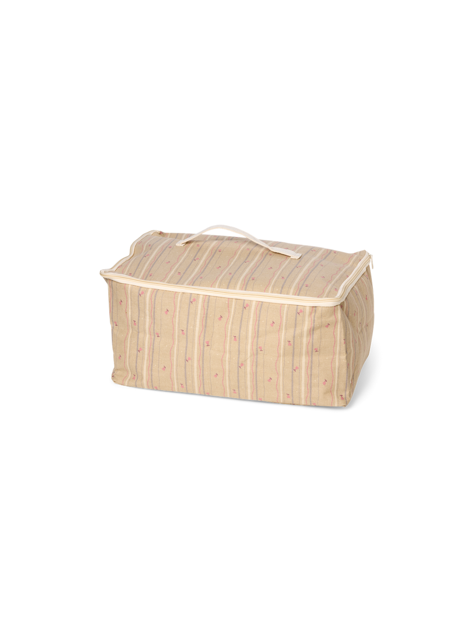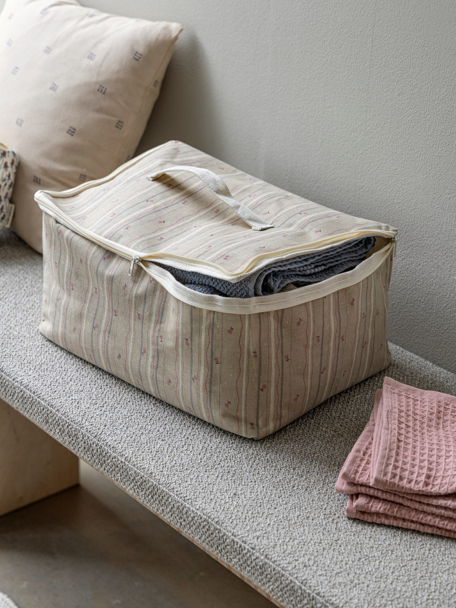 "This charming storage bag is both practical and decorative," Clara says as she pulls it out to retrieve bedding for the sisters' guests. "Lovely for all sorts of items."