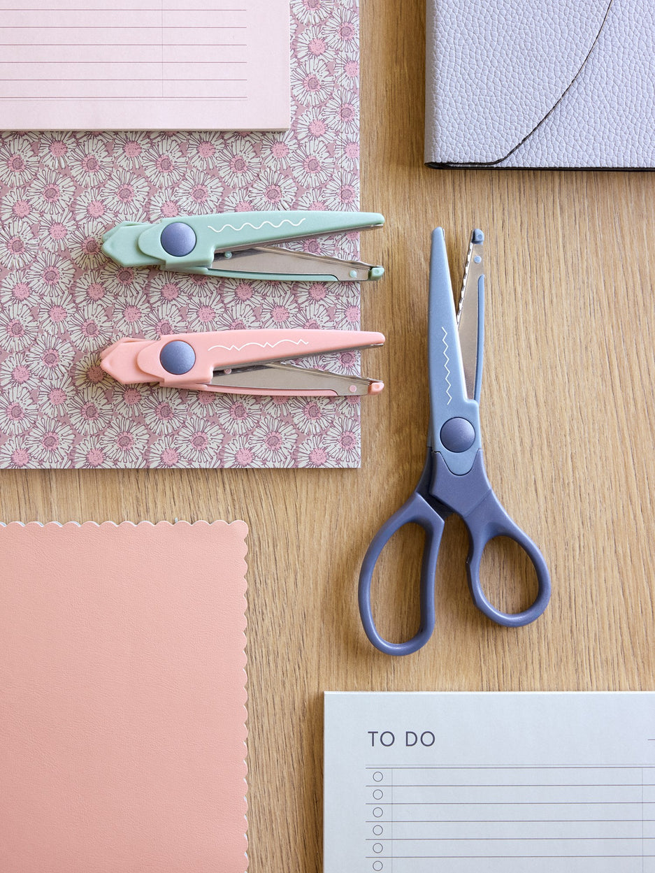 "These scissors are perfect for all sorts of creative projects," says Anna, picking up the set. Clara smiles, "Indeed, they are quite practical for crafting and organising our stationery collection."
