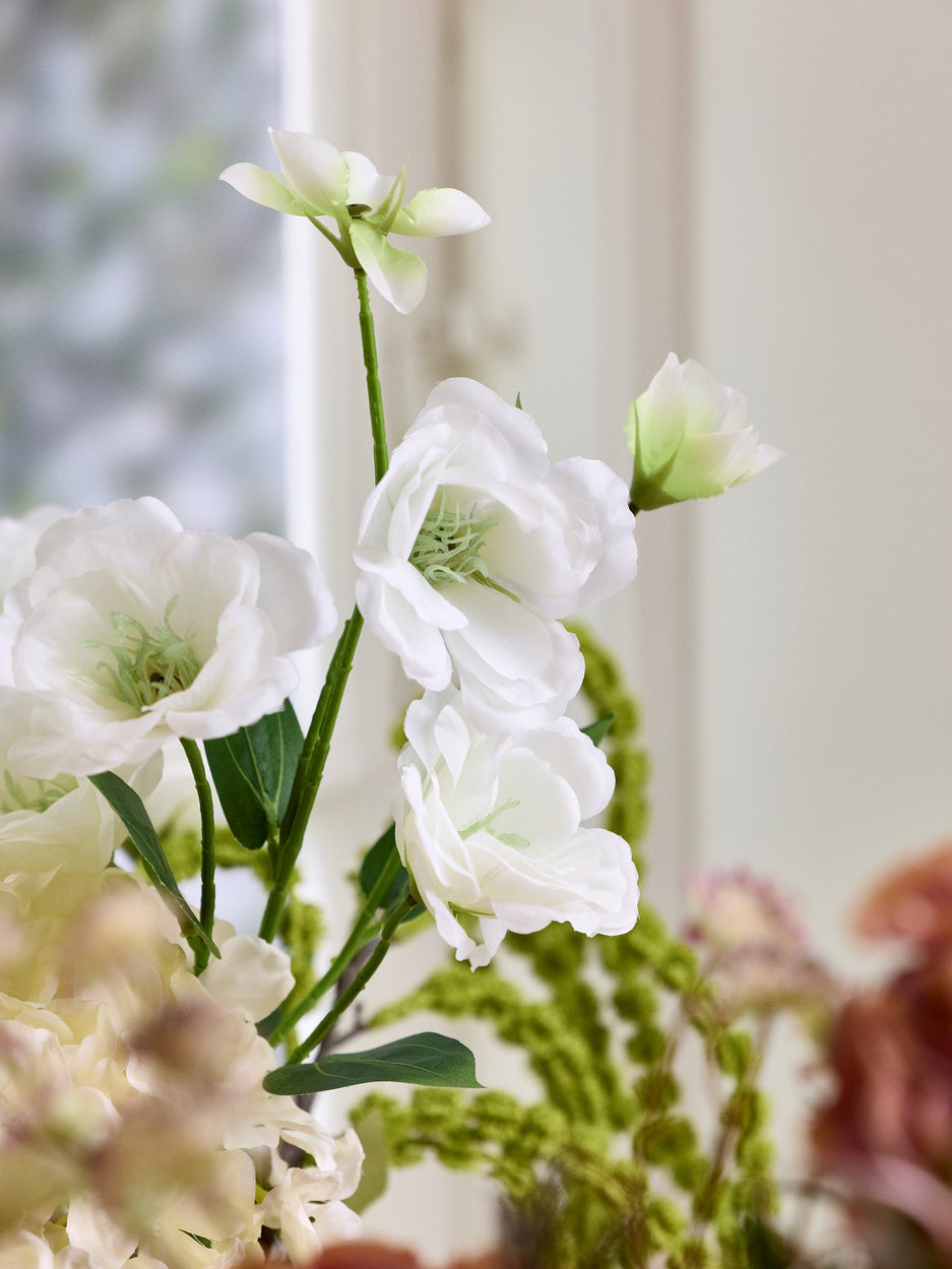 "These flowers bring a sense of everlasting beauty to any room," Clara says, arranging the artificial blooms. Anna adds, "They add a touch of charm without the need for watering, perfect for a cosy home."