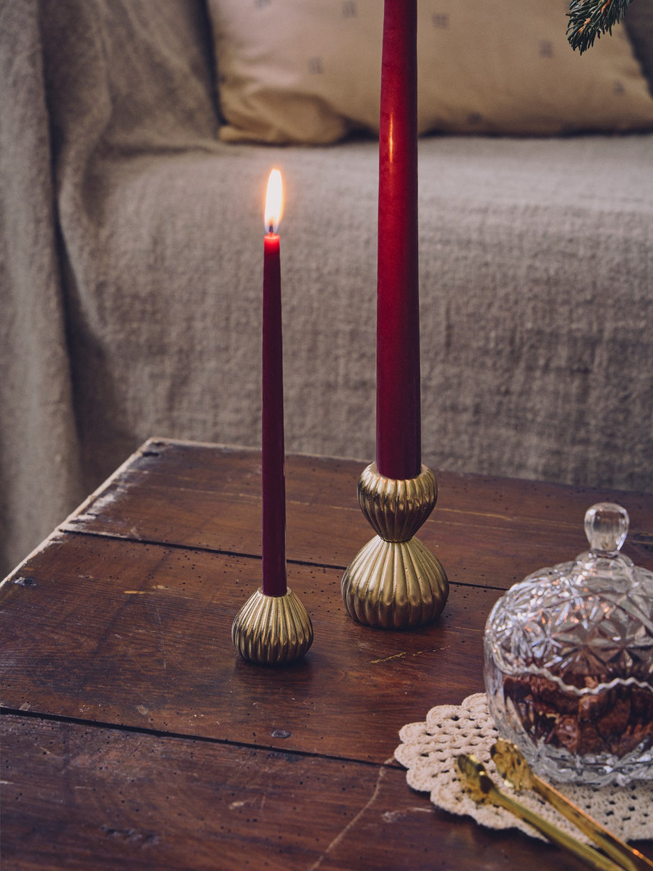 Clara sets a candleholder on the windowsill, enjoying its gentle gleam. "A small light steadies busy evenings," she says. Anna places a bloom nearby and adds, "Let the warm glow bring sweetness to everyday corners."