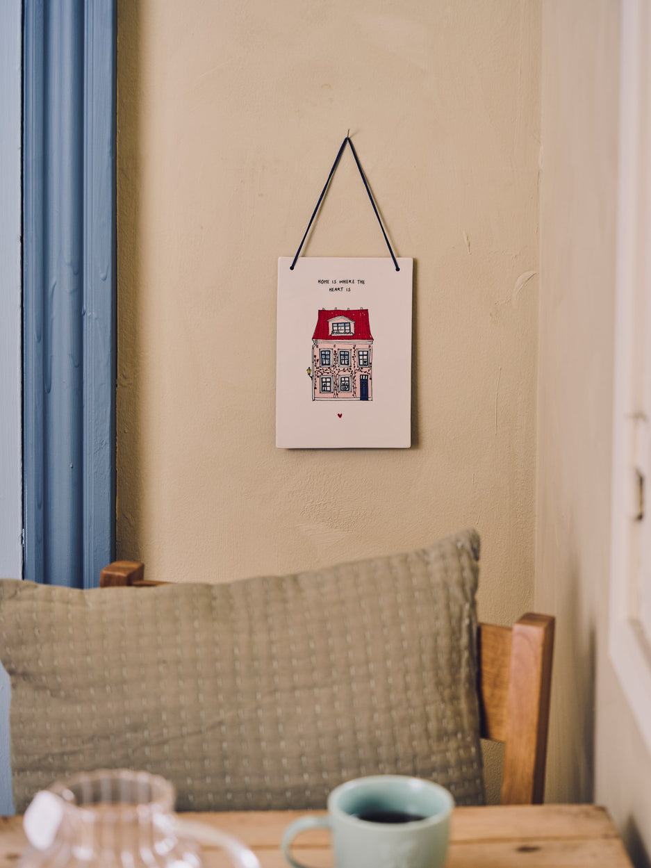 "Such a charming decoration brings warmth to any wall," Anna notes, admiring the ceramic piece. Clara observes, "It adds a delightful sentiment to our home, reminding us of cherished times together."