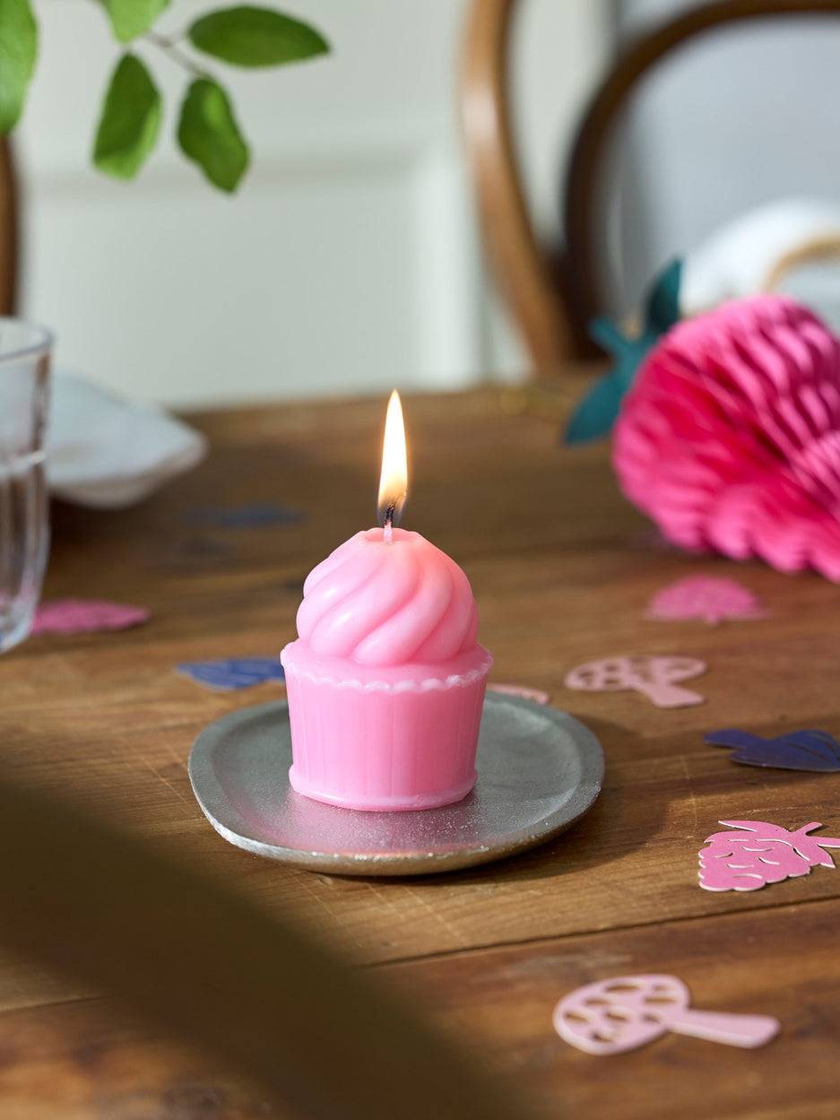 The cupcake candle sits charmingly on the table, its swirled frosting design inviting admiration. "Such a delightful addition to any celebration," Clara says. Anna adds, "It brings a whimsical touch to the festivities, like a sweet treat without the sugar!"