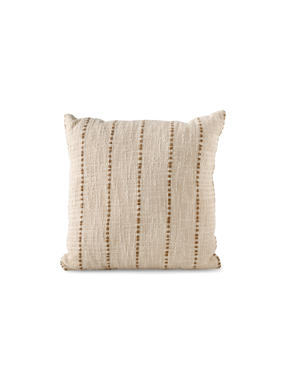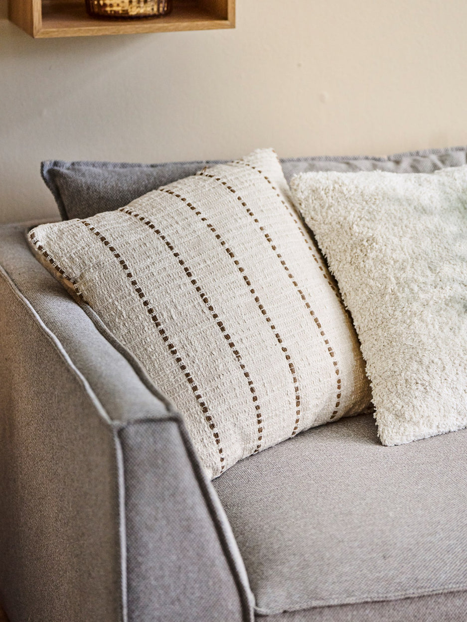 "This decorative cushion brings a cosy touch to any space," Clara says, admiring its textured stripes. Anna adds, "Its neutral hues blend beautifully with any decor, adding warmth and style to your home."