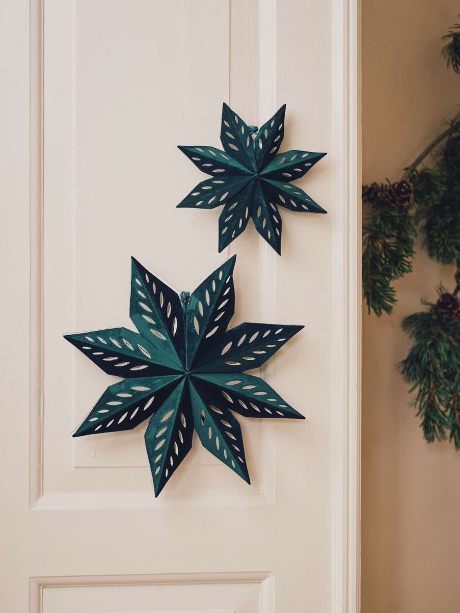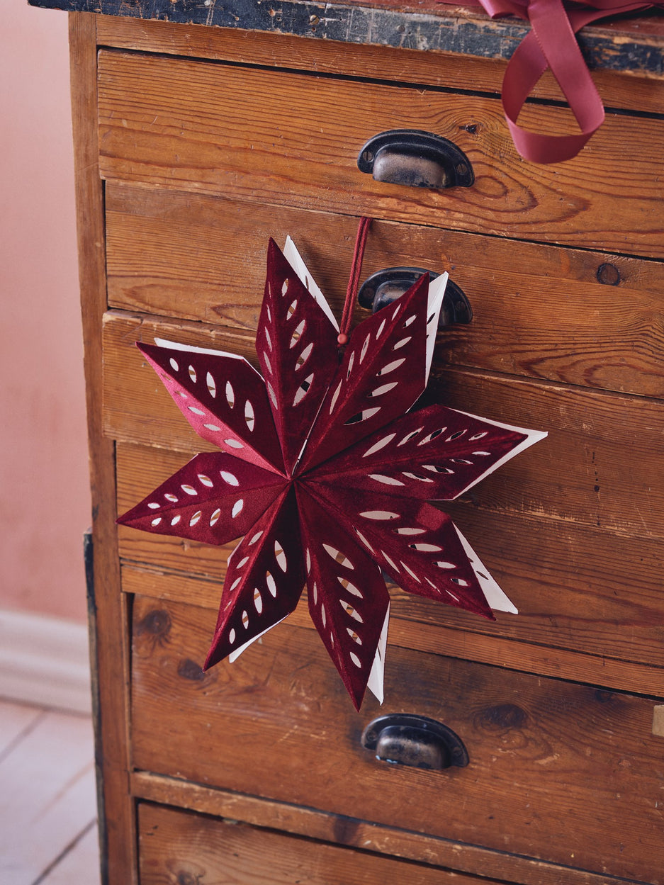 "How enchanting," Clara says, admiring the velvet star with its gentle LED glow. "It brings a cosy warmth to any room," Anna adds, envisioning it hanging gracefully in their home, casting delightful patterns of light.