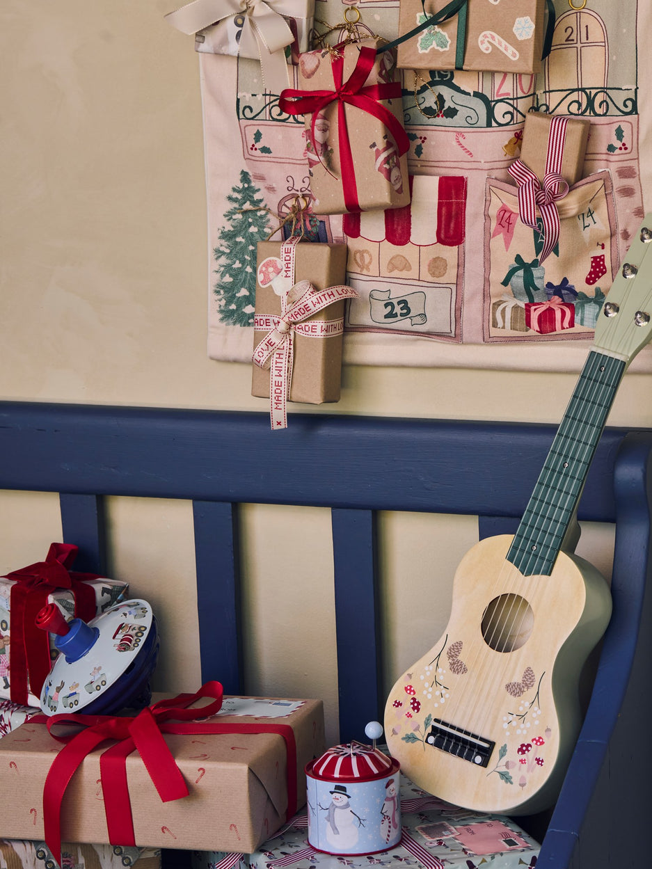 "I wonder what is in my Advent calendar today," the nephew muses, as he peeks into one of the pockets of the wall-mounted Advent calendar the sisters have filled with little surprises. Clara smiles a secret smile, well-knowing that the pretty wrapping conceals a little toy that will bring hours of fun and delight the children.