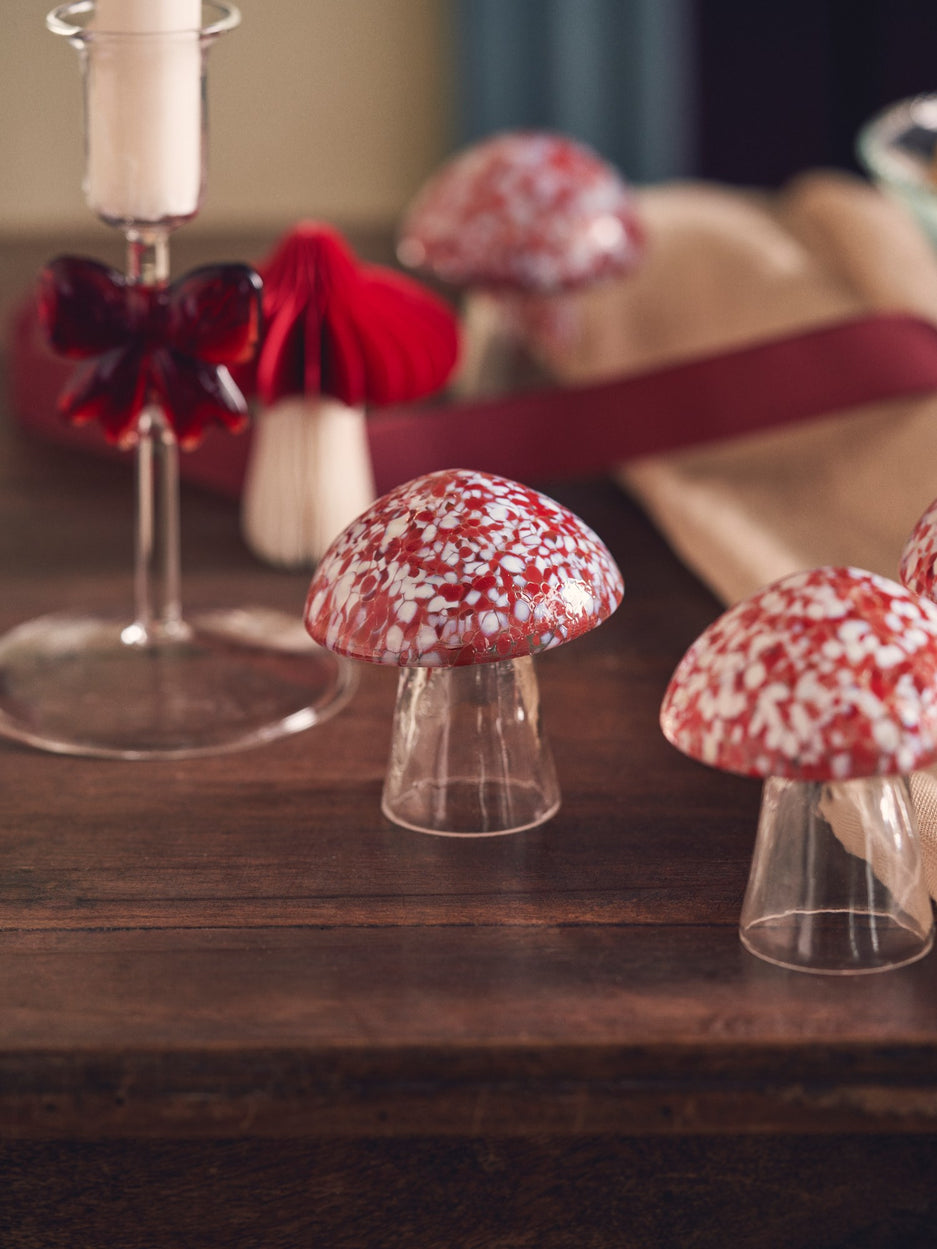 Anna gently places the mushroom ornament on the mantelpiece. "A whimsical touch for our festive decorations," she smiles. Clara agrees, "It brings a delightful charm to our home during the Christmas season."