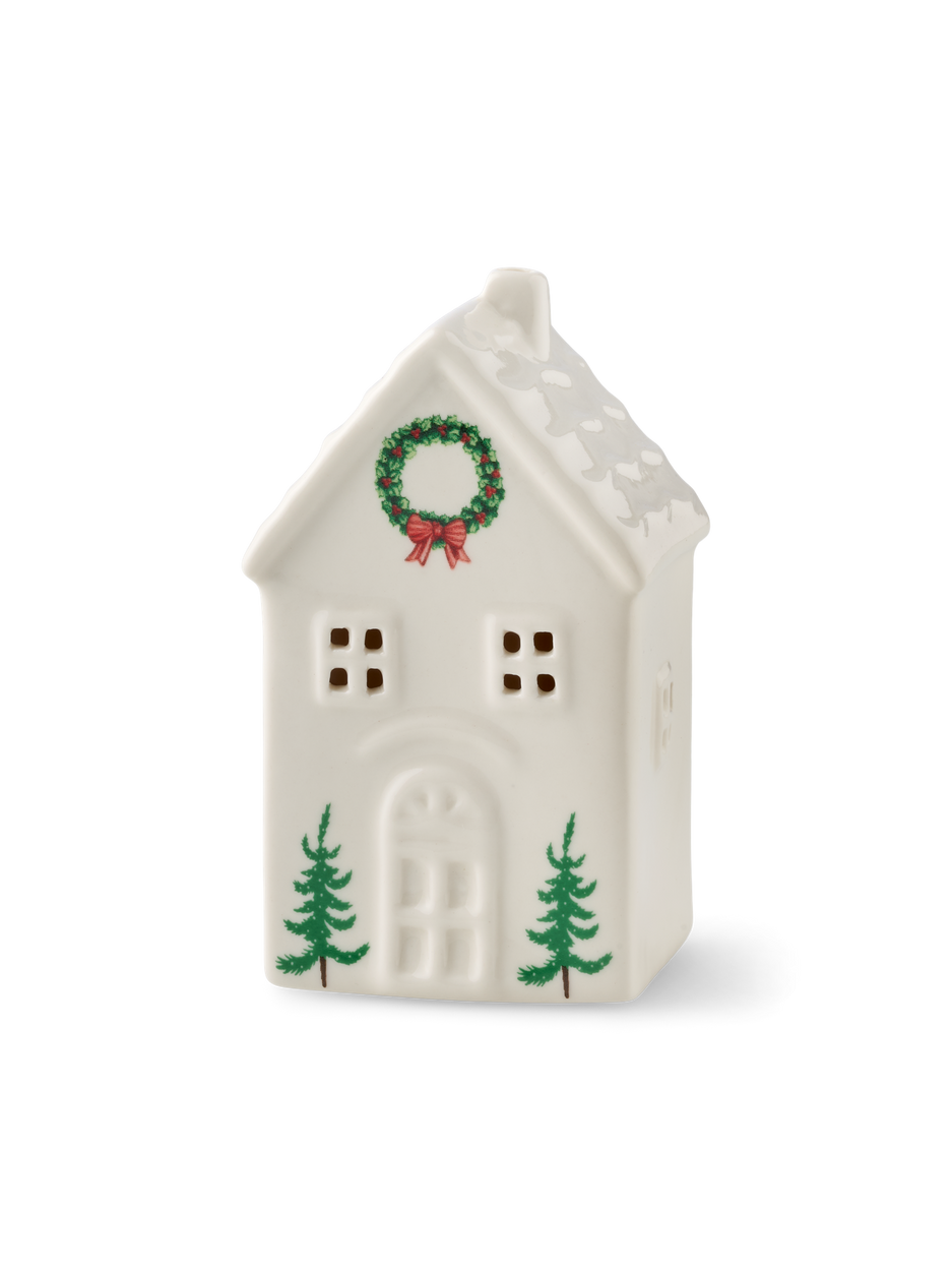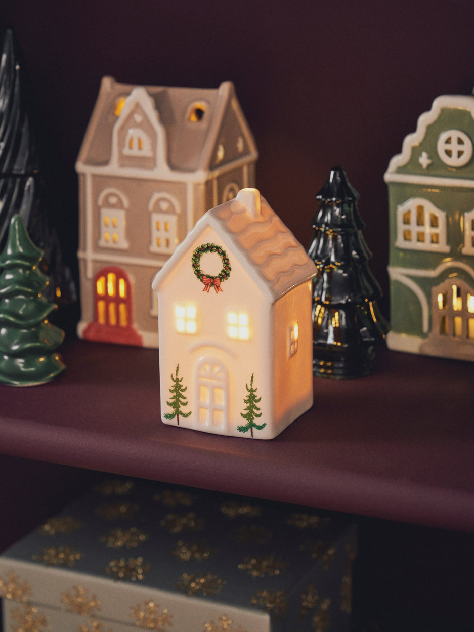 On a quiet afternoon, Anna and Clara arrange ceramic houses, trees, and small figures on the shelf. Piece by piece, a magical landscape appears – just in time for the Christmas elf to move in.