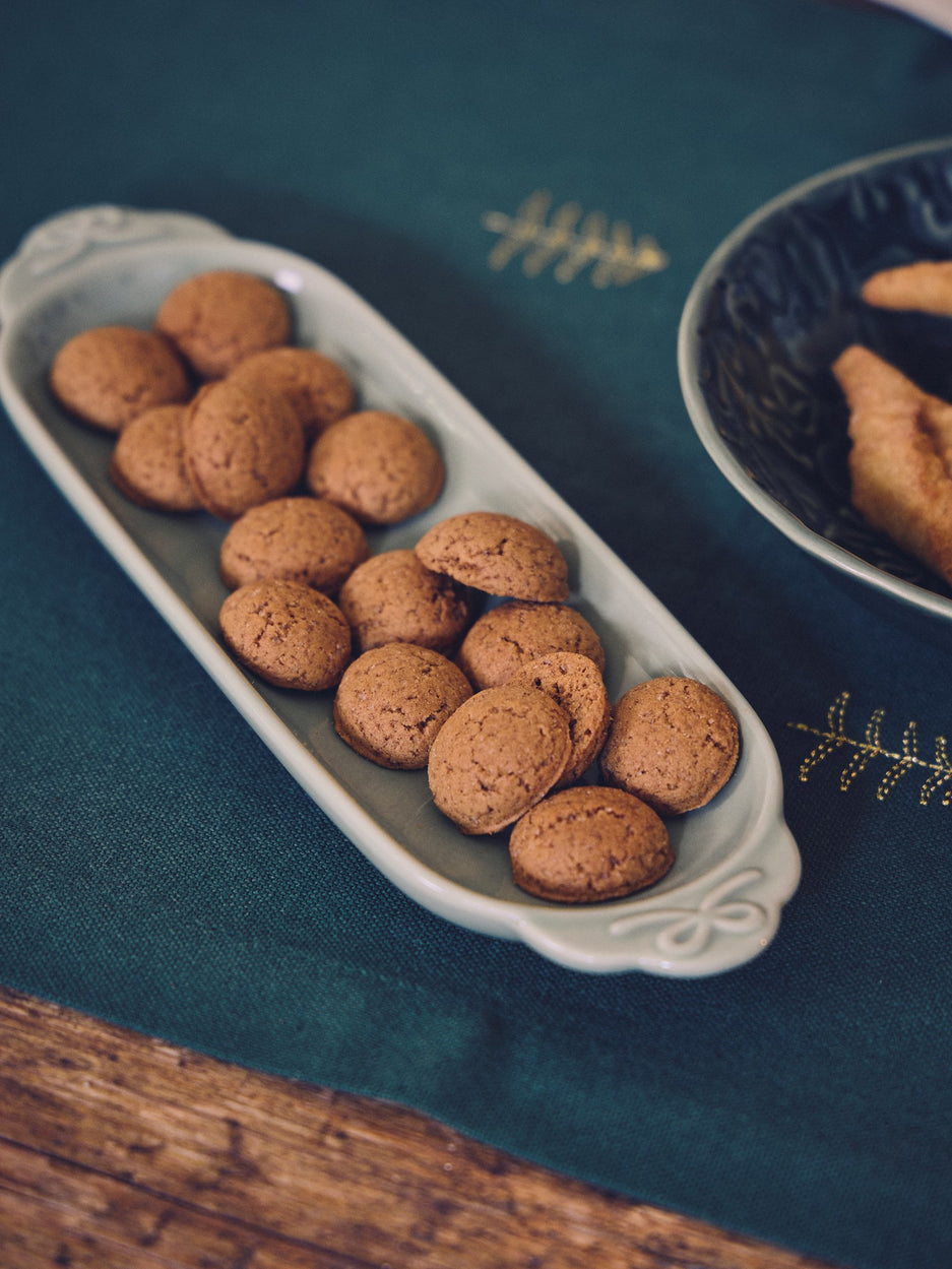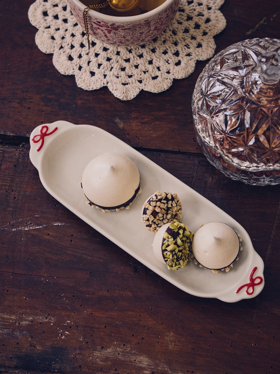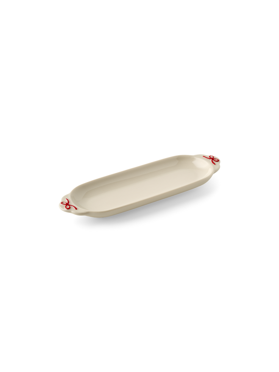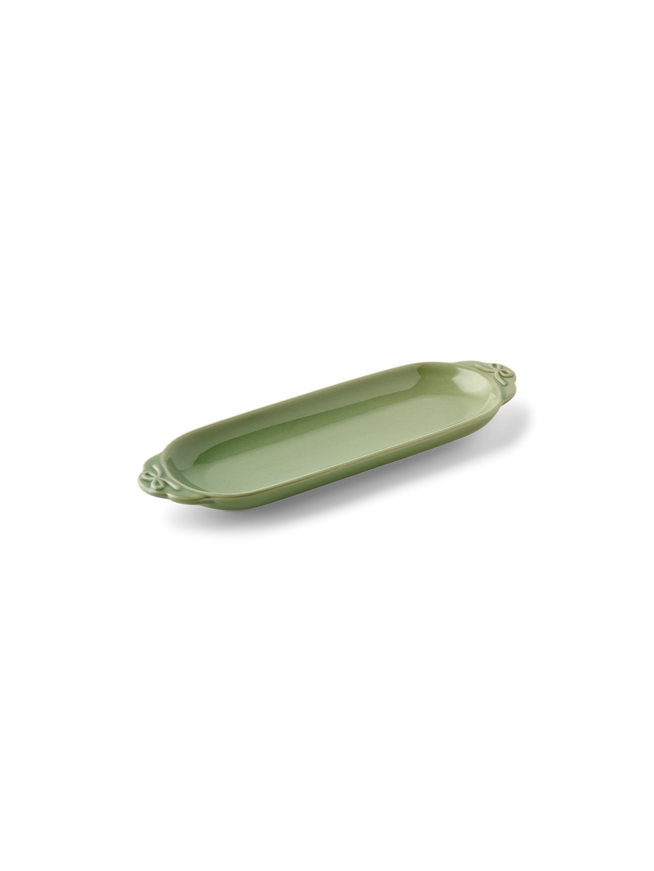 Clara smiles, "This serving dish keeps the table orderly, and the handles help when carrying pies or salads to the dining room." Anna continues, "Let me add a pretty garnish; it brings joy to everyday meals and looks so lovely."