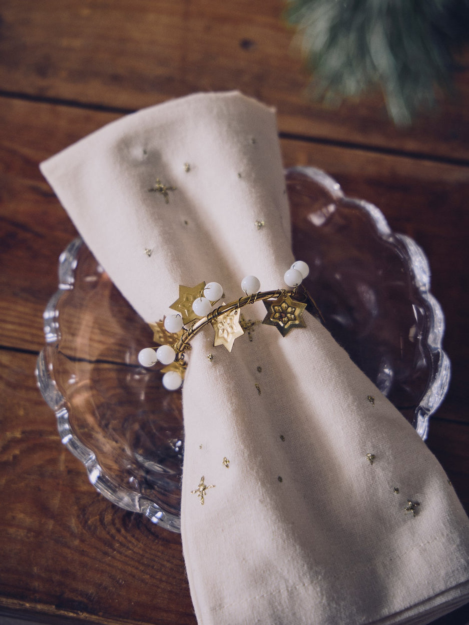 A cosy supper feels festive when napkins are gathered in these lovely rings. "They lend an aesthetic flourish,” Anna remarks. “They keep each napkin neatly in place and need only a gentle wipe after supper," Clara says.