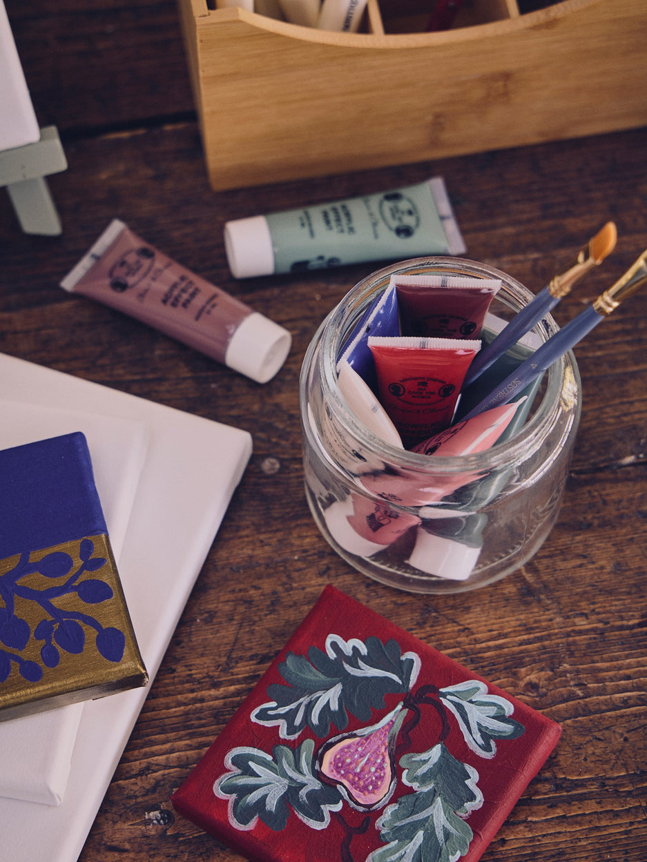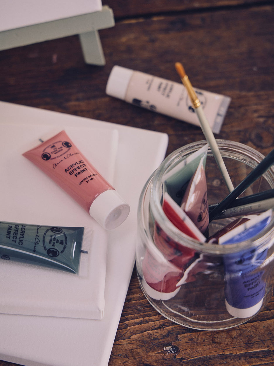 "These vibrant tubes inspire endless creativity," Anna says, arranging the acrylic paint set. Clara adds, "A delightful addition to any artist's collection, bringing colour to every canvas."