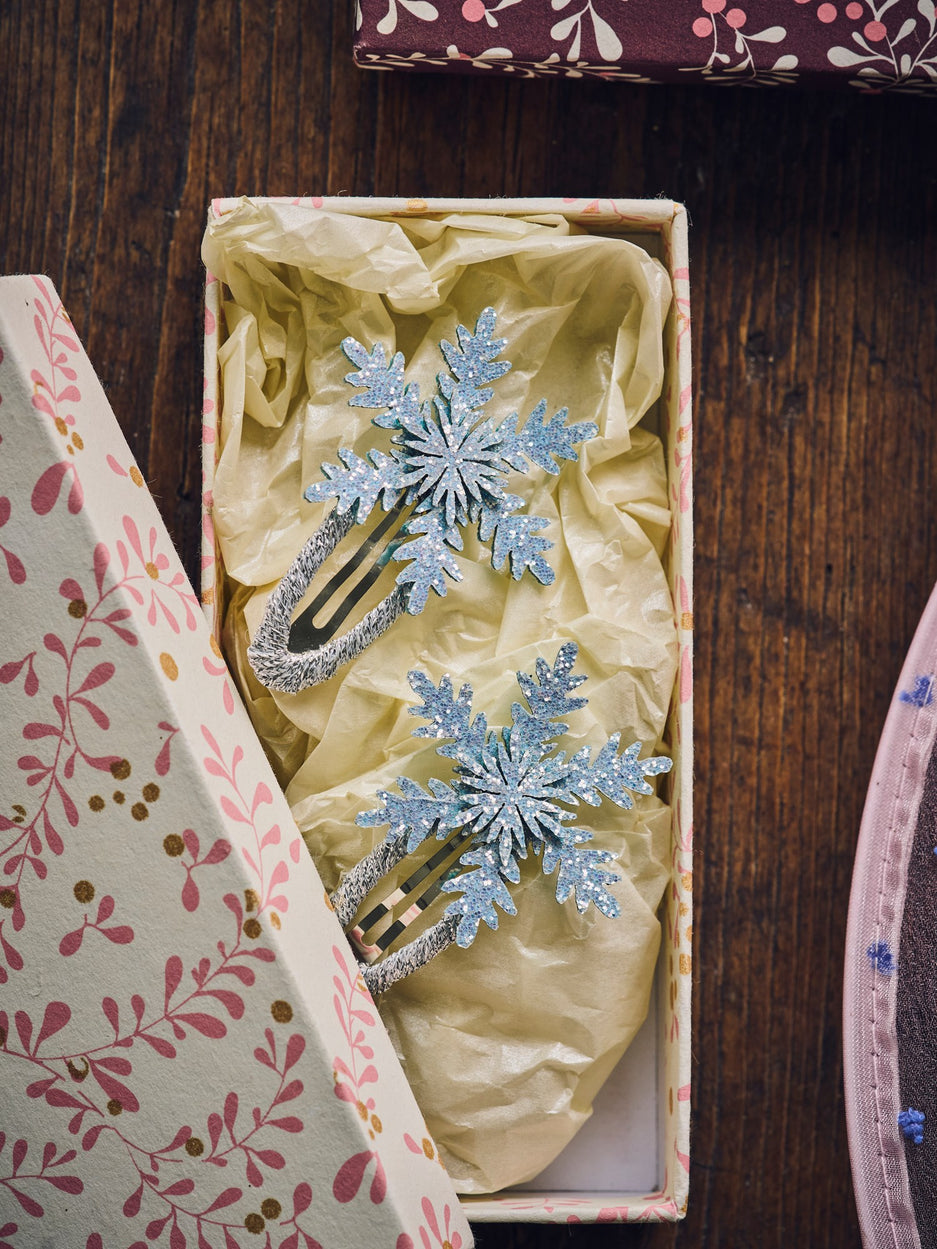 Beautiful accessories are a lovely way to add a touch of whimsy to any outfit, Anna says with a smile. "And they make for a great little gift for a loved one," Clara adds, as she slides a small gift box for her nephew under the tree.