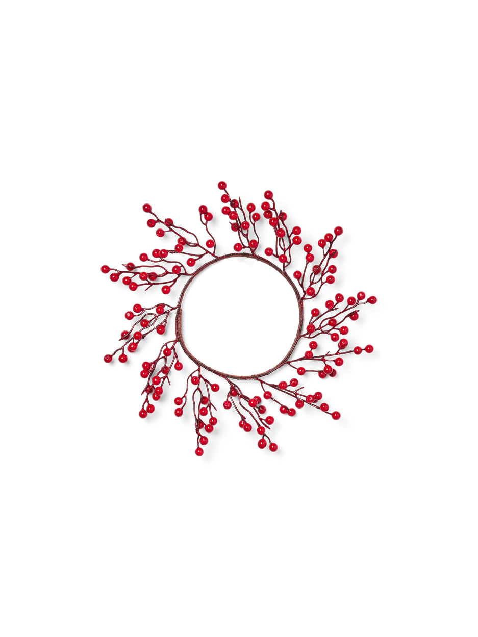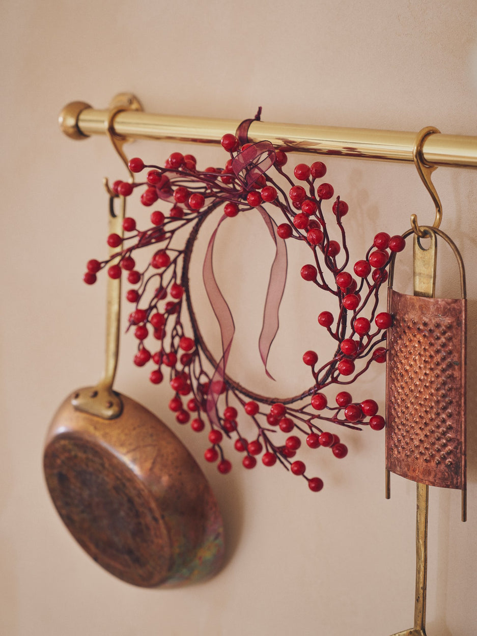 The red berries decorative wreath graces the door with a touch of charm. "A wreath brings warmth to any entrance," Clara says. "Its vibrant berries add a lovely splash of colour," Anna adds.