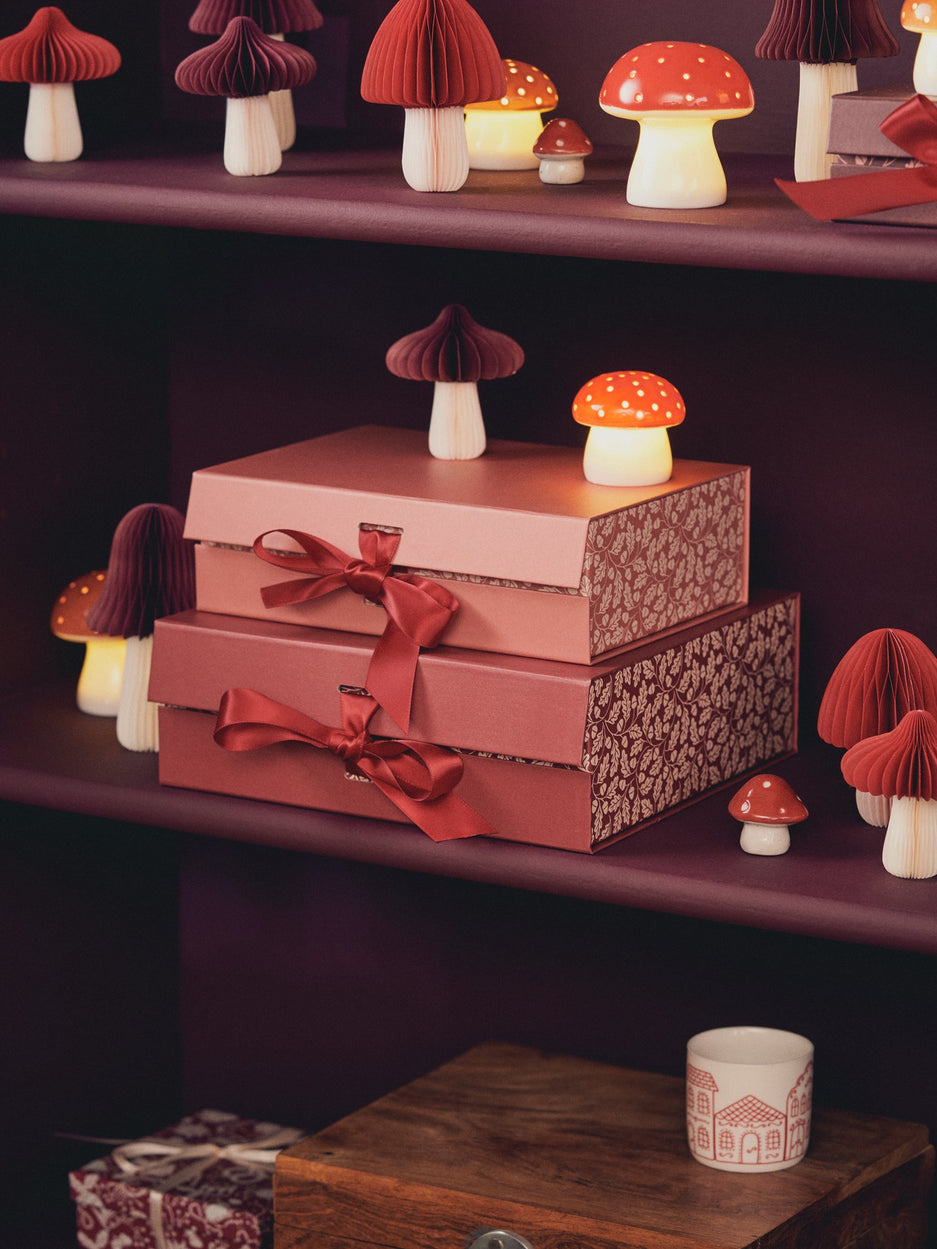 A gift box sits elegantly on the table, its delightful pattern catching the light. "Such a lovely way to present a gift," Clara says as she passes by. "I wonder who the lucky recipient is..."