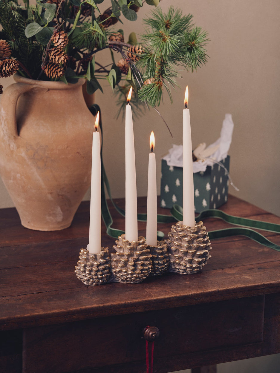 Anna gently places a candle in the holder, admiring its unique design. Clara says, "Such a piece brings a touch of nature indoors, creating a cosy atmosphere for our gatherings."