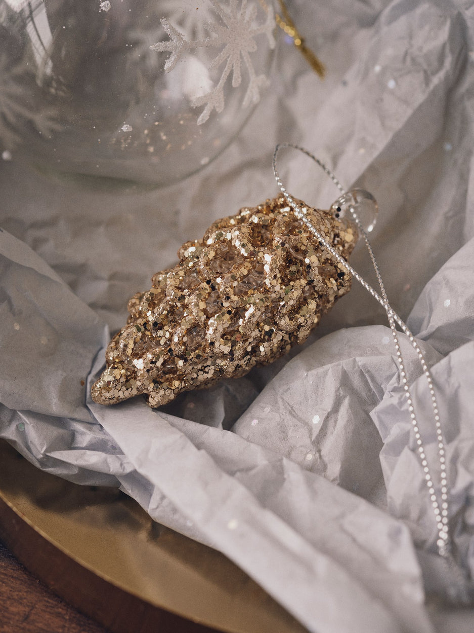 The glass cone ornament glimmers softly, catching the light in a delightful dance. "Such a charming addition to any festive display," Clara insists. "It brings a touch of magic to our home," Anna says with a twinkle in her eye.