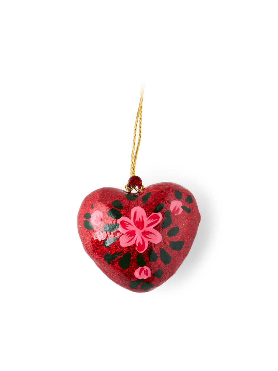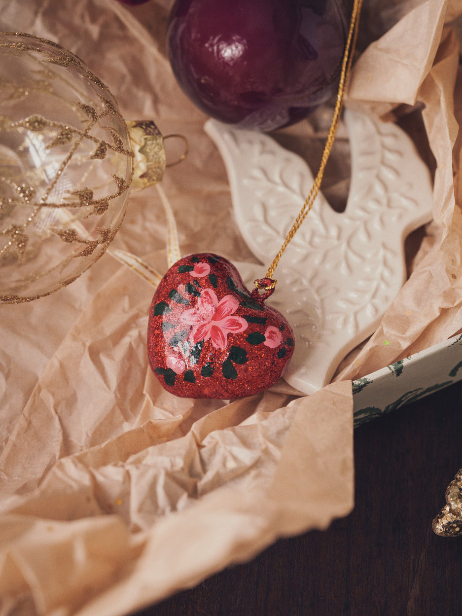 Clara gently hangs the heart ornament by the window. "A touch of charm for any room," she says with a smile. Anna continues, "The floral design brings a lovely hint of nature indoors, brightening our home with warmth and beauty."